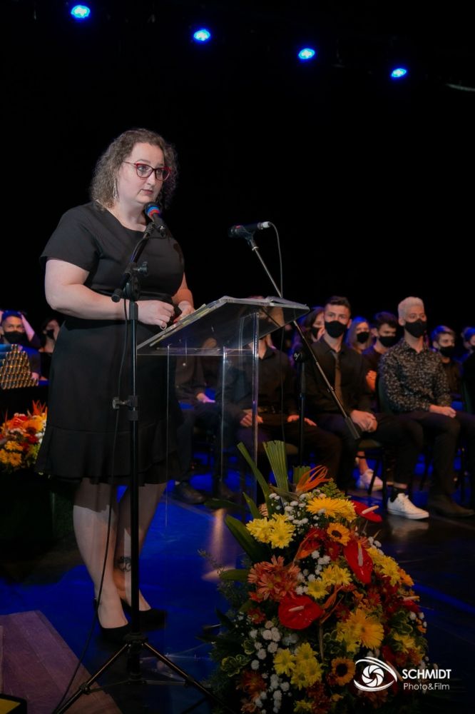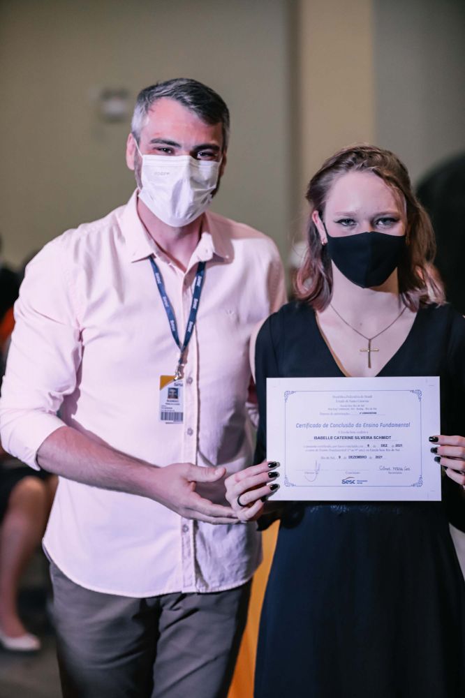 Os alunos Nathan Luis Carrança Rodrigues e Mônica de Andrade, da Escola Sesc Jaraguá do Sul enalteceram todos que contribuíram para esse momento especial. “Desde nosso primeiro dia na escola, muito antes de sabermos ler, escrever, ou fazer qualquer tipo de conta básica, sempre tivemos junto a nós nossos pais e professores, que sempre buscaram fazer o melhor possível para nos ensinar não só os conteúdos, mas também valores de vida e nos mostraram o mundo de outra forma”.