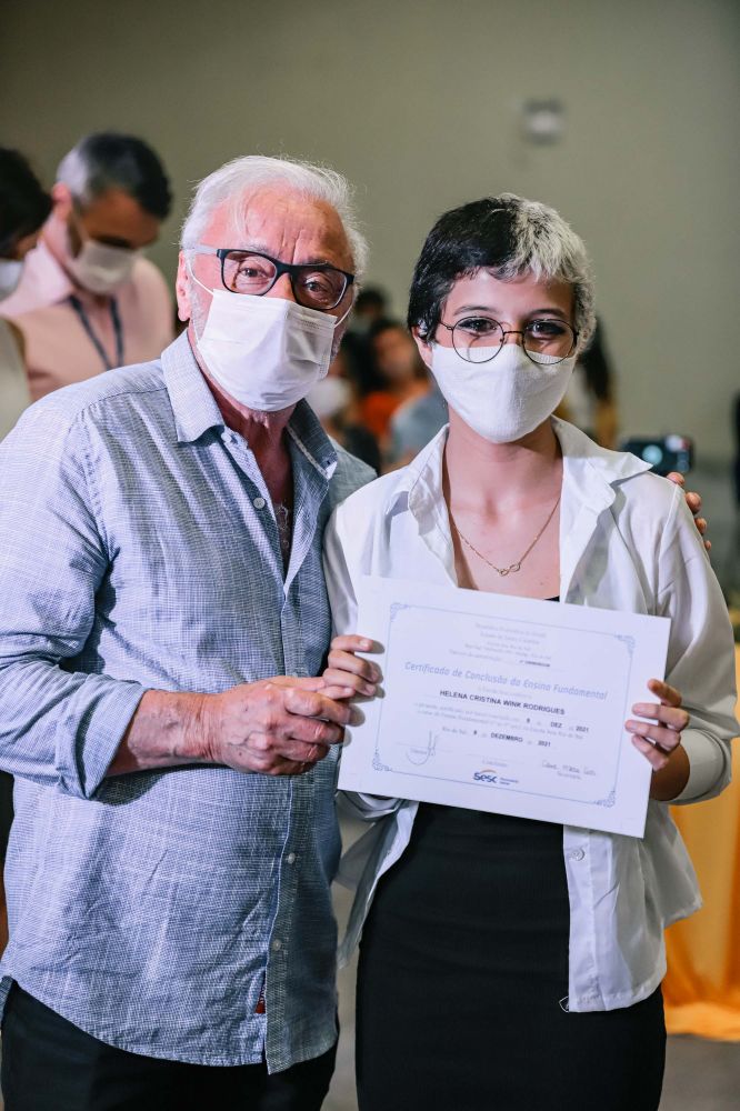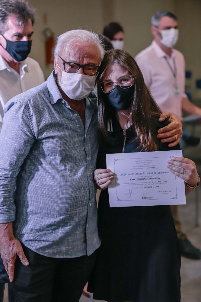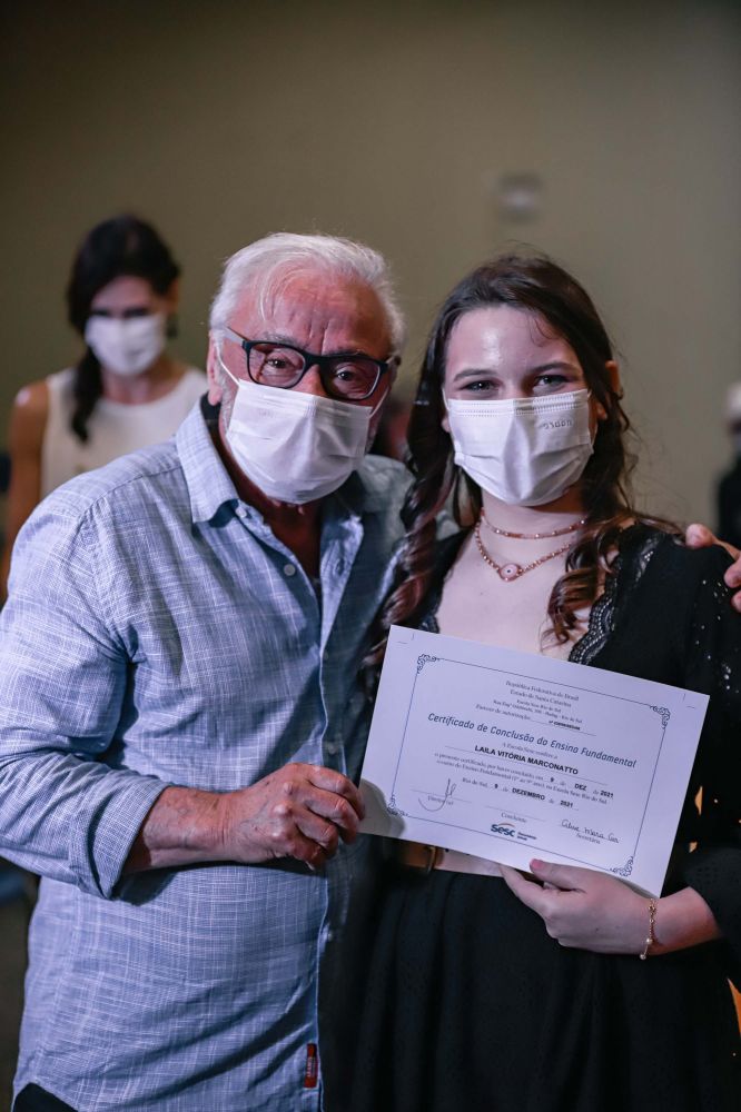 É o caso da aluna Leticia Azevedo de Souza, da Escola Sesc Chapecó, conforme relatou em seu discurso: “Tudo começou há 12 anos, quando com 3 anos de idade os meus pais resolveram me colocar para estudar no Sesc. Me lembro da emoção que era sair do ‘Sesquinho’ para ir no parque do ‘Sescão’. Quem diria que hoje estaríamos encerrando esse ciclo tão especial. Eu achava que iria para a escola em busca de educação, mas recebi muito mais do que isso, muito amor, afeto, amizades, apoio e orientação”.