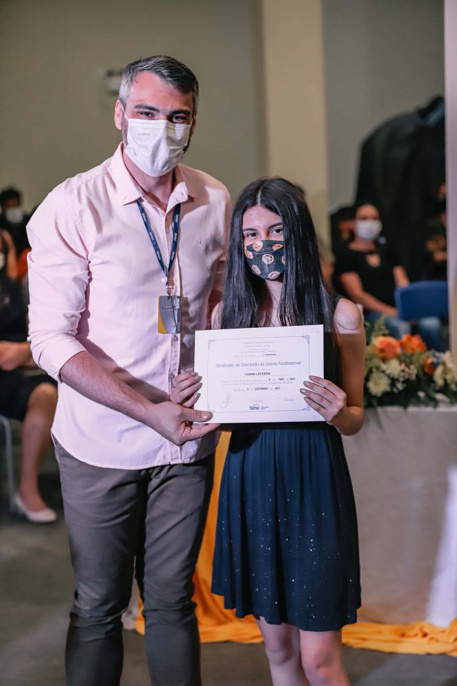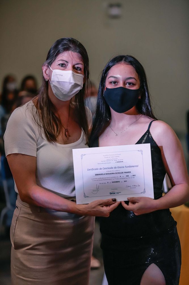 Os alunos do nono ano das Escolas Sesc Chapecó, Criciúma, Itajaí, Jaraguá do Sul, Joinville, Palhoça e Rio do Sul receberam os diplomas de conclusão do Ensino Fundamental nas formaturas realizadas ao longo do mês de dezembro. As cerimônias seguiram os protocolos de segurança e foram marcadas pela emoção, despedidas e agradecimentos.
