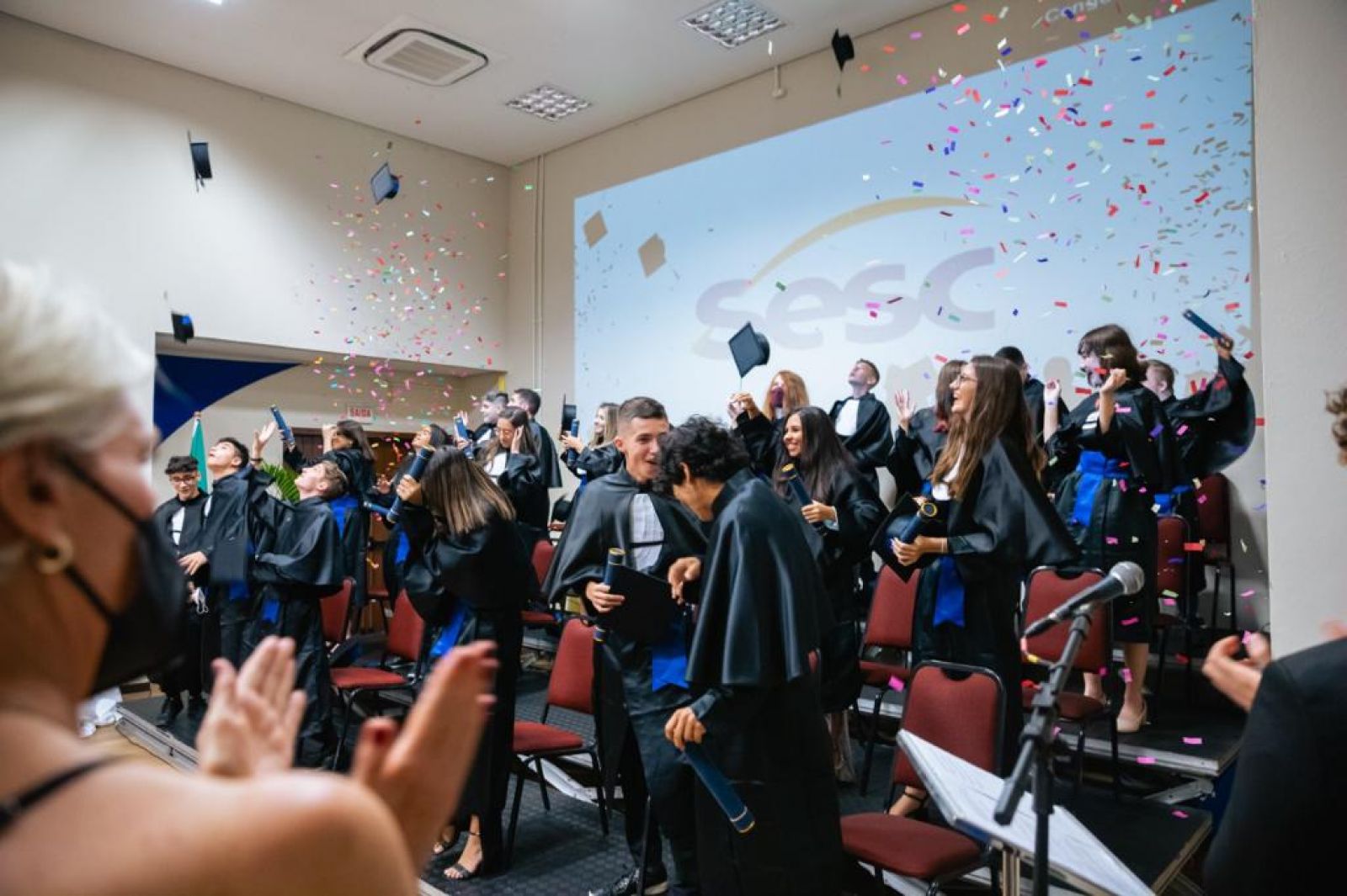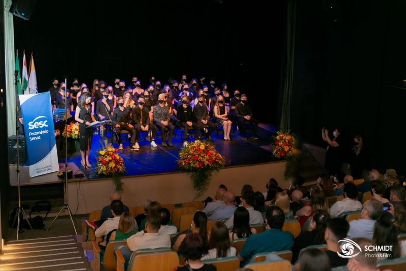 A formatura representa um marco depois de uma longa jornada de estudos e dedicação, o fim de um ciclo de muito aprendizado, e início de outra etapa com novas descobertas e caminhos a serem trilhados. Uma celebração que não poderia deixar de acontecer na Rede de Ensino Sesc-SC, ainda mais depois de dois anos com tantas adaptações, devido a pandemia de Covid-19.