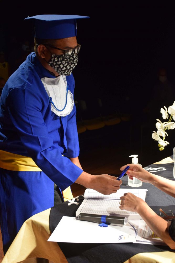 A noite da sexta-feira, 03/12, foi o momento de celebrar essa conquista. Dos 20 concluintes, 10 fizeram questão de encerrar esse ciclo com a tradicional cerimônia, dessa vez com poucos convidados e seguindo todos os protocolos relacionados à pandemia. E não podia faltar a beca, as homenagens e o canudo na mão.