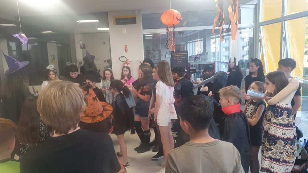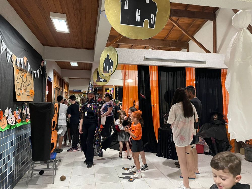 No Sesc Blumenau, por exemplo, aconteceram momentos de jogos, brincadeiras, desfile de fantasias e a celebração do famoso “trick or treat” em formato de lanche coletivo. As atividades, integradas entre alunos de várias idades, propiciaram momentos de confraternização, trocas e aprendizado do idioma.