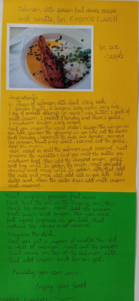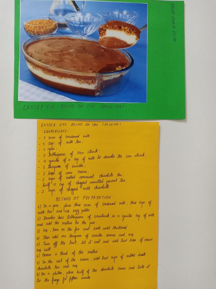 Aproveitando que os alunos do Intermediário 1, de Inglês Adulto, estão estudando os alimentos no livro "Interchange 2", a equipe do Sesc Blumenau propôs uma atividade diferenciadas à turma. Os estudantes pesquisaram e apresentam suas receitas preferidas de pratos salgados e doces típicos de Páscoa.