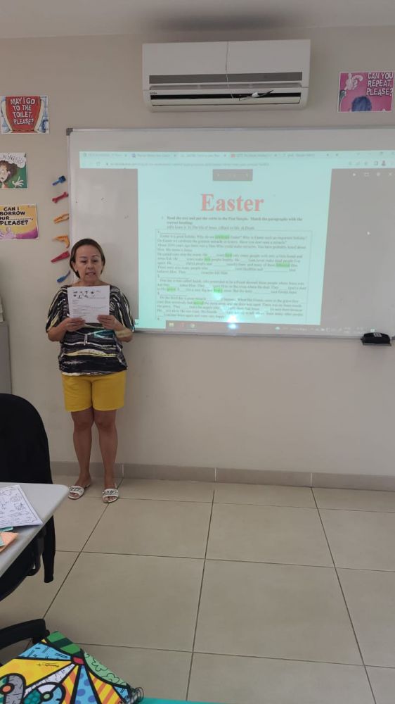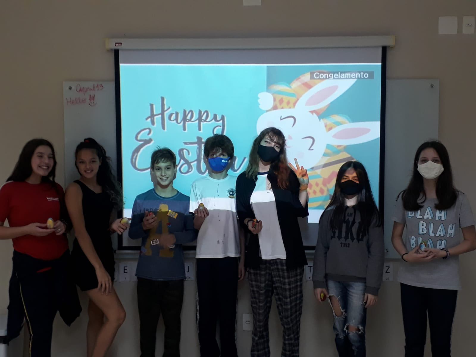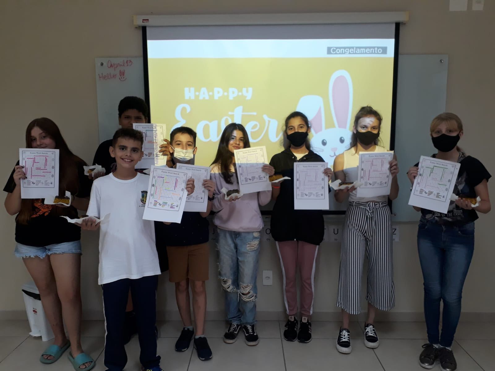 Nesta semana, várias turmas do Sesc Idiomas estão desenvolvendo atividades alusivas à Pascoa, celebrada no domingo (17/04). De modo lúdico, significativo, com projetos de seu interesse e relacionando o aprendizado da língua inglesa à data, os alunos se motivam e aprendem de forma efetiva. Com a metodologia comunicativa, as quatro habilidades do conhecimento são exploradas nas aulas: ouvir, falar, ler e escrever.