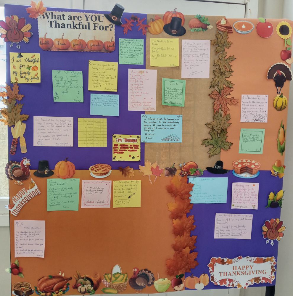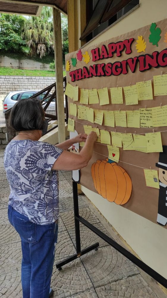 Para marcar a data, na semana de 22 a 27 de novembro, os alunos dos cursos de Inglês, das modalidades Infantil, Adolescente, Adulto e Máster, do Sesc Idiomas Blumenau, trabalharam a temática da comemoração. Cada aluno foi convidado a escrever um bilhete em inglês ressaltando pelo que é grato. Os mesmos foram expostos em painéis no Sesc Blumenau.