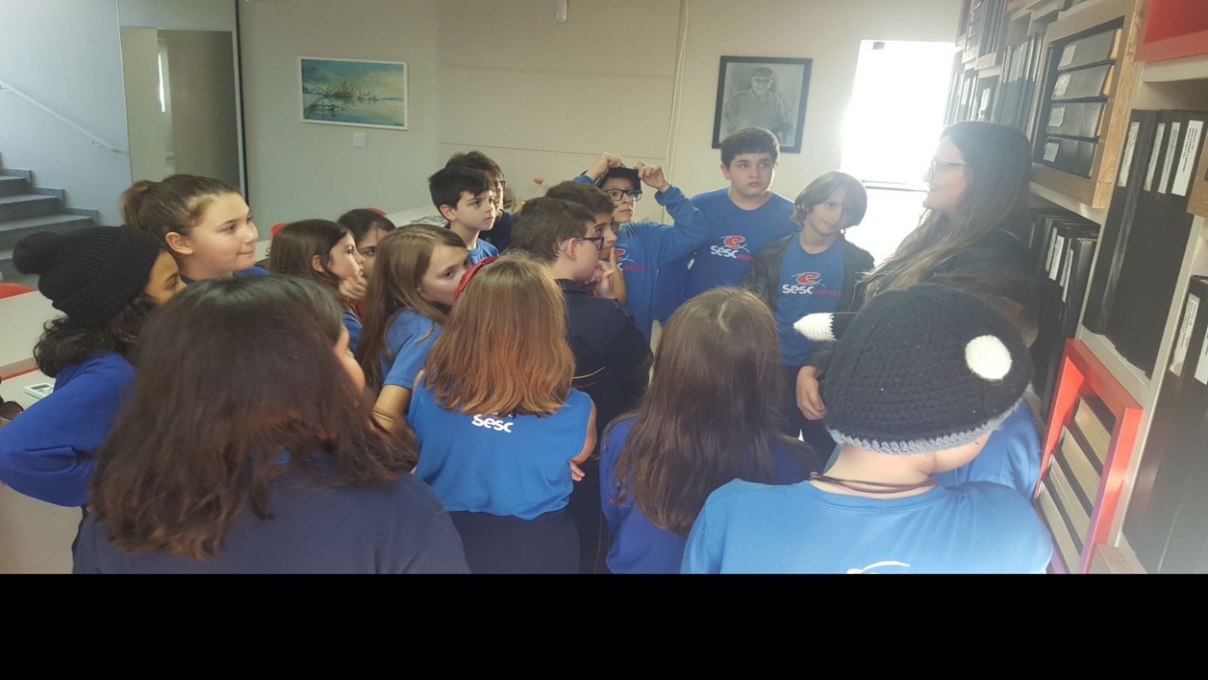 Alunos do projeto Habilidades de Estudo (contraturno escolar) do Sesc em Itajaí tiveram um dia diferente, no dia 26 de junho. Como eles têm trabalhado com elementos de banca de jornal e um dos temas abordados é o próprio jornal, uma das turmas foi recebida na redação do jornal Diarinho do Litoral.