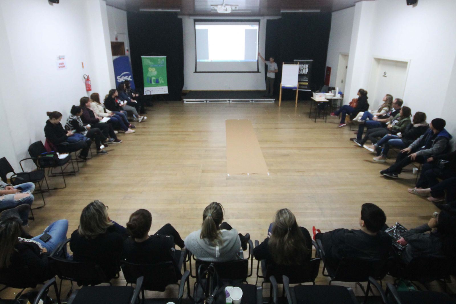 A oficina “Como utilizar o cinema em sala de aula”, realizada no Centro Cultural Vidal Ramos Sesc, em Lages, no dia 31 de agosto aproximou educadores da linguagem cinematográfica. A atividade contou com 32 participantes que se familiarizaram com ferramentas que contribuem para análise e exploração do filme como recurso pedagógico.