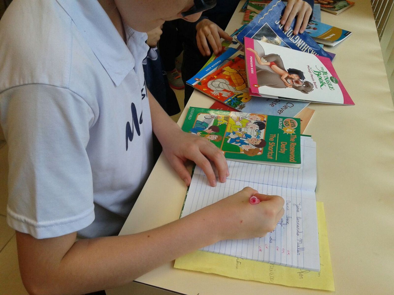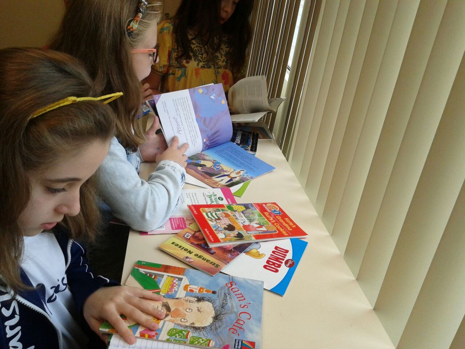 Os alunos de algumas turmas de inglês infantil do Sesc em Chapecó participaram de uma atividade sugerida pela teacher, Nilva Gabriel, que disponibilizou na sala alguns livros literários escritos em inglês como sugestão de leitura para casa. O entusiasmo das crianças com os livros foi contagiante pois o momento da troca do livro era aguardado com muita expectativa.