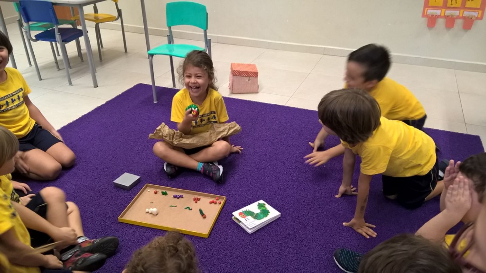 aprendendo e se divertindo no momento bilíngue com a história “The very hungry caterpillar” (Uma
