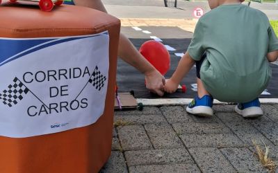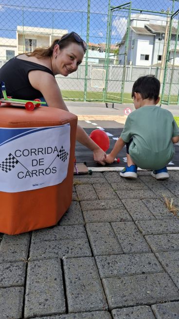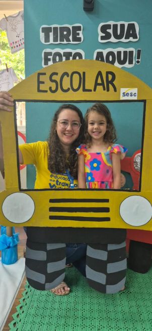 Hoje, a Alícia contou que gostou especialmente da mostra sobre os meios de transporte — aquáticos e terrestres — e de brincar com os números usando os carrinhos.", relara Ketlin, mãe da aluna Alícia, da Escola Sesc São Bento do Sul.