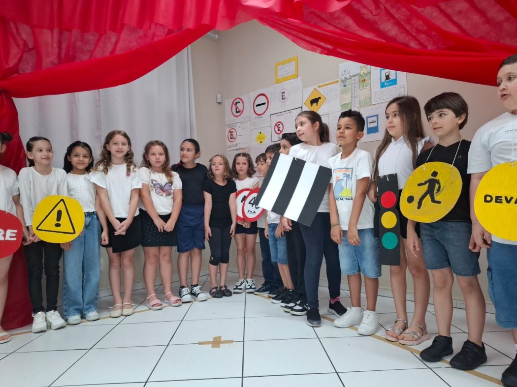 Por meio de pesquisas, experiências práticas, produções artísticas e atividades interdisciplinares, as crianças exploraram sinais, meios de locomoção, regras de convivência e o papel de cada pessoa na construção de um trânsito mais seguro.