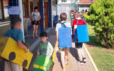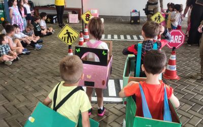 Na Escola Sesc Araranguá foi desenvolvido um trabalho amplo e integrado com as turmas da Educação Infantil, tendo como tema central “Educação para o Trânsito”. O eixo norteador possibilitou vivências significativas que exploraram diferentes linguagens, comportamentos e atitudes de segurança presentes no cotidiano das crianças. O estudo guiou também a 2ª Mostra de Artes e Ideias da unidade, que envolveu todas as turmas da Educação Infantil.