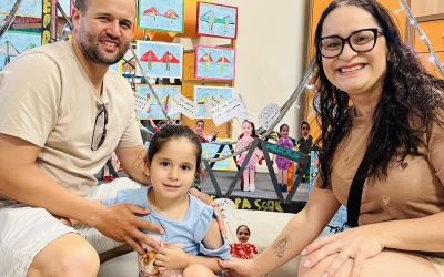 "Nós nos surpreendemos positivamente com o Sesc ao longo do período letivo. A equipe pedagógica é muito competente, e sempre tivemos uma relação próxima com as professoras e a coordenação. A Mostra de Artes é sempre especial, porque conseguimos visualizar claramente a evolução do nosso filho, na coordenação motora, na fala e na convivência com os colegas. Pelas atividades apresentadas, percebemos o quanto ele avançou. Outro ponto que valorizamos muito é o incentivo à leitura e a metodologia própria da escola, que contribuiu para que nosso filho se tornasse mais independente. Só temos experiências positivas com o Sesc. Sem dúvida, foi a melhor escolha para a educação do nosso filho.", declara Bruna e Eduardo, pais de aluno da Escola Sesc São Bento do Sul.