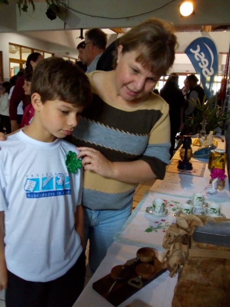 “Eu estou deslumbrada!”, afirma Maria Bernadete Giacomelli, que é avó de quatro alunos da Escola Sesc Palhoça. “A cada vez que acontece algum evento aqui no Sesc, eu sempre me surpreendo. A gente está muito contente com o ensino. O que me chama mais a atenção é a união das famílias, que hoje em dia é difícil de ver nas escolas. O Sesc trabalha muito a família, eu aprecio muito isso”, completa. Bernadete é avó dos alunos Alice (Educação Infantil), Breno (1º ano), Paula (3º ano) e Bruna (4º ano). Na foto, ela aparece ao lado das netas Bruna e Paula, e do tio delas, Valério Alves, que também fez questão de prestigiar a Mostra.