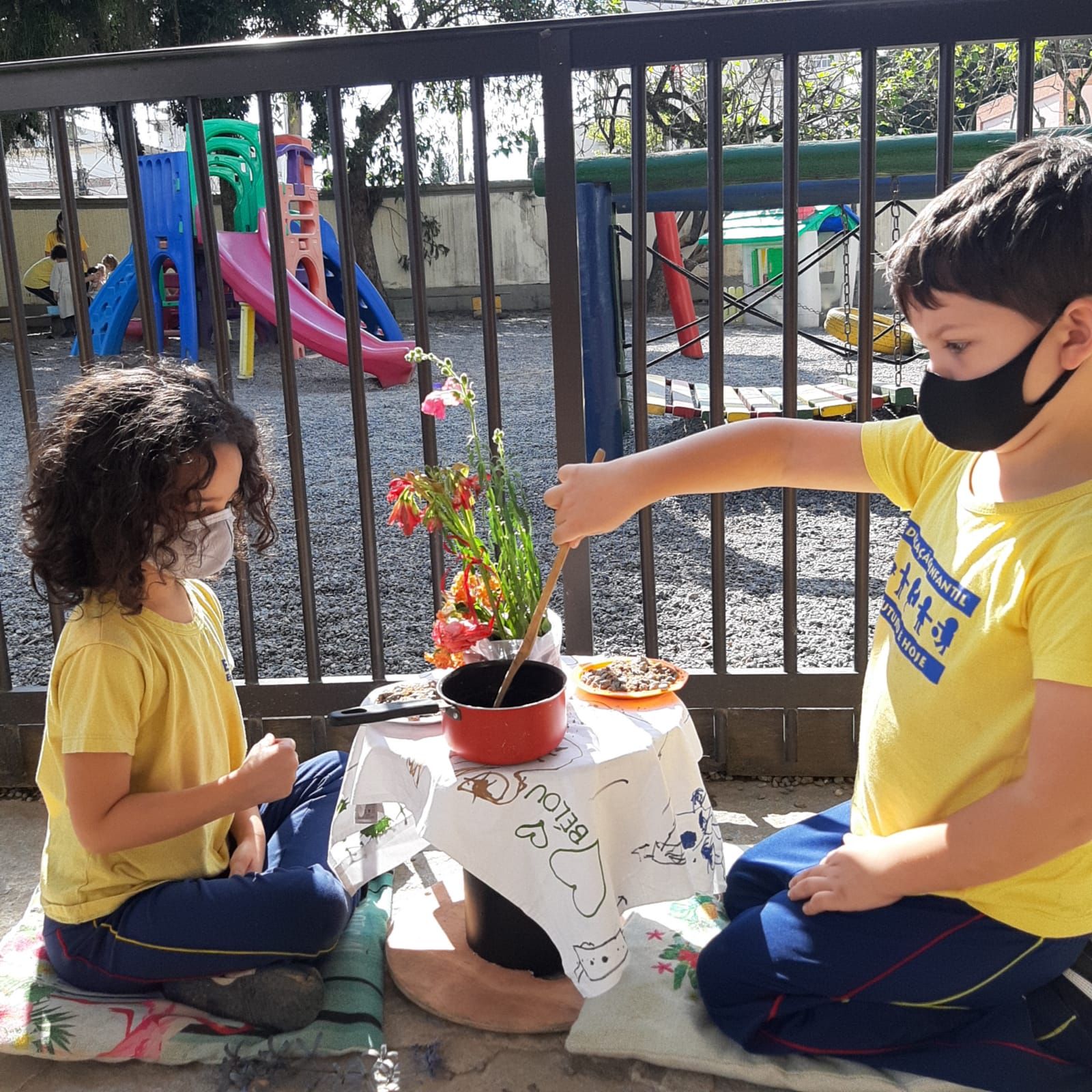 Vale destacar que esses momentos de interações e brincadeiras tiveram que ser reestruturados, seguindo os protocolos de segurança contra a Covid-19, mas sem perder a essência de oportunizar as crianças a conexão e aprendizagem.