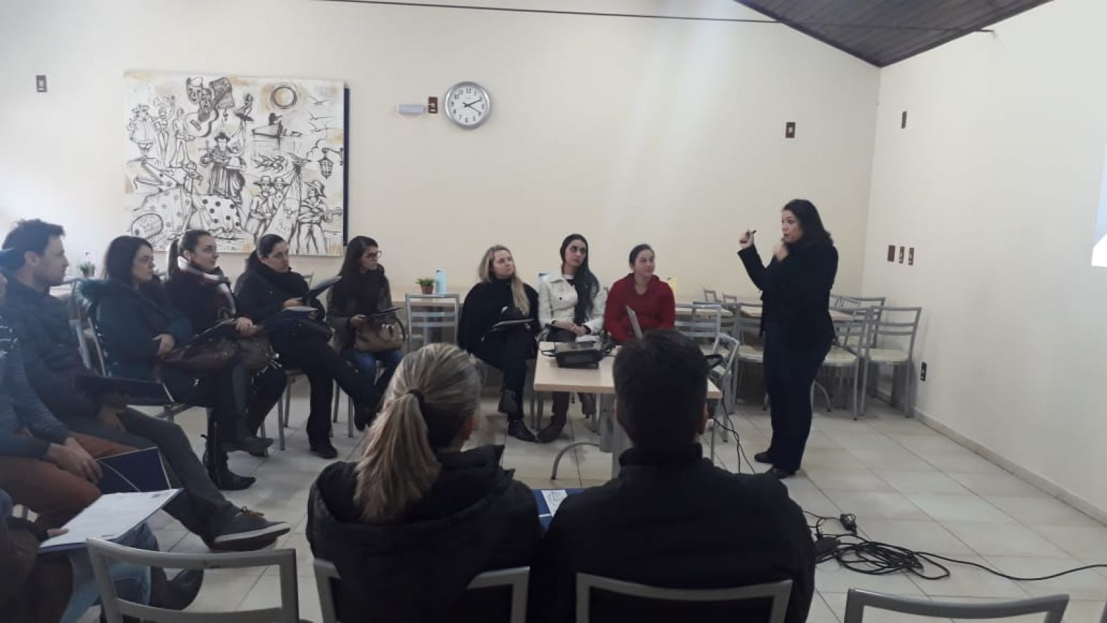 Através de uma roda de conversa com as famílias, a psicopedagoga Graziela Laurindo utilizou como base situações do dia a dia, o comportamento das crianças na atualidade buscando orientar para a responsabilidade emocional e a qualidade de tempo dedicado aos filhos em um diálogo descontraído sem apontar “culpados”, mas que levasse cada adulto a refletir sobre suas próprias atitudes e o reflexo no comportamento das crianças.