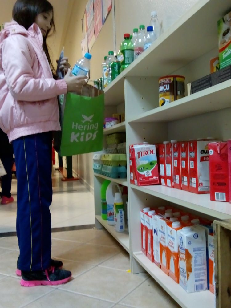 Além disso, as turmas visitaram um supermercado que fica logo em frente ao museu, com o objetivo de realizarem uma pesquisa de preços, que servirá como base para o estudo que já vem sendo realizado através do minimercado montado na escola. Inicialmente foi apresentado aos alunos a organização do espaço por características das mercadorias, em seguida, cada aluno, munido de sua prancheta, pesquisou os preços de sua lista de compras e após a lista de preços dos produtos da cesta básica.