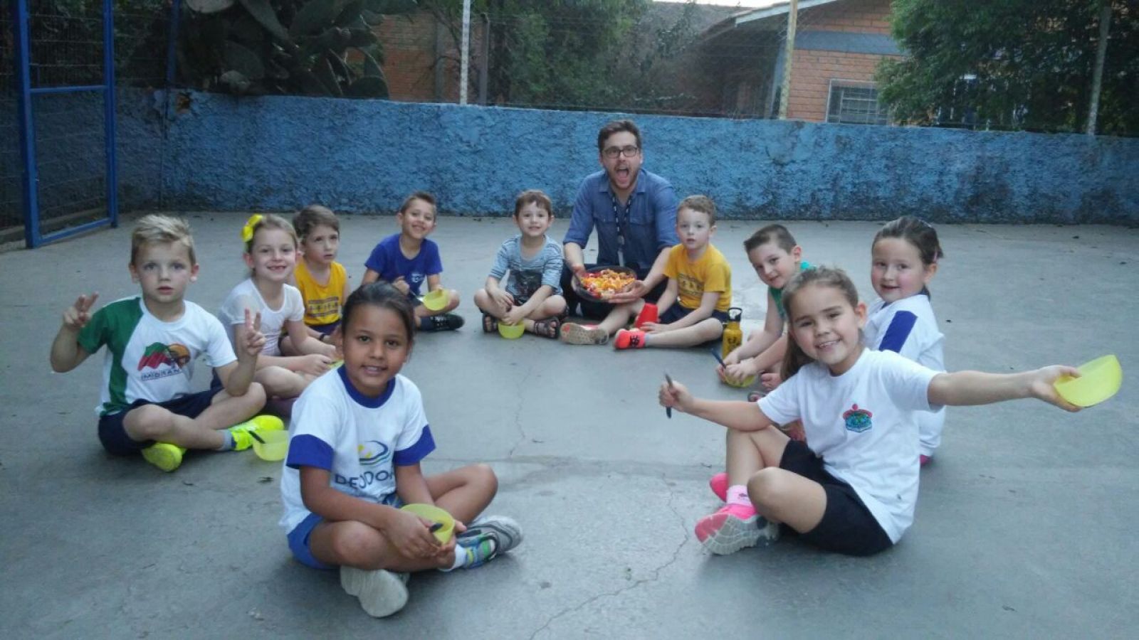 o instrutor Jonathan desenvolve juntamente com as crianças, brincadeiras e