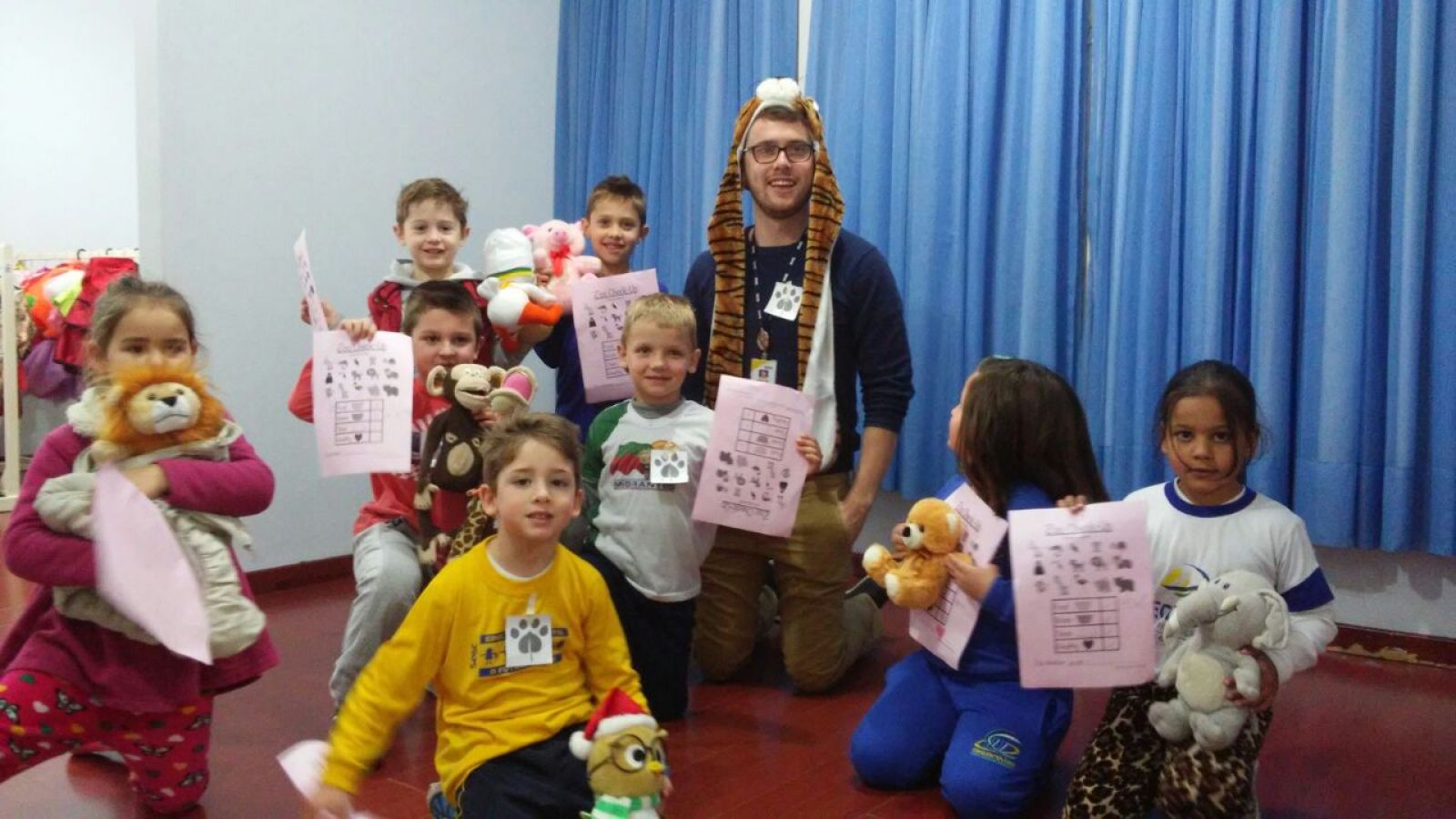 faixa etária entre 4 e 6 anos, embarcam junto com o instrutor de idiomas
