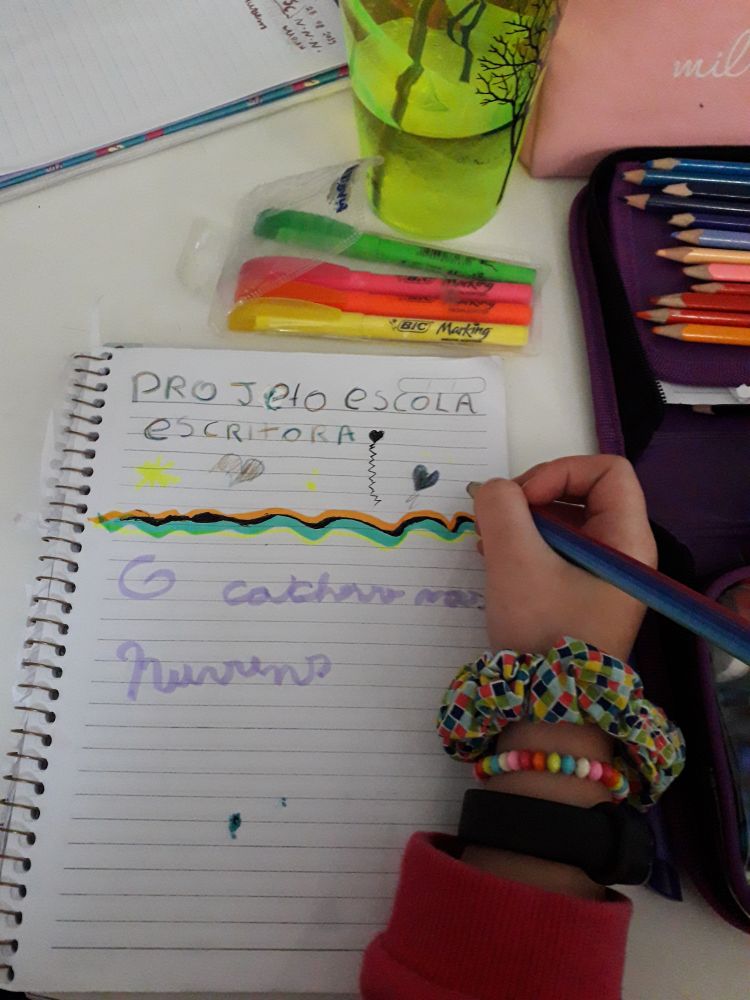 O Projeto Escola Escritora está cativando as crianças...Também tivemos devolutiva positiva dos pais, os filhos estão indo para casa satisfeitos e felizes porque estão aprendendo de forma lúdica e diferente. Os pais perceberam que os assessores conquistaram os alunos com sua dinâmica de trabalho. Os alunos relataram: ‘Nossa como está sendo legal, aprendemos brincando, criamos histórias e diferentes técnicas para ilustrar’! ‘Viemos o dia todo e nem cansa’. É um trabalho muito interessante e que contribui com o desenvolvimento da competência escritora.