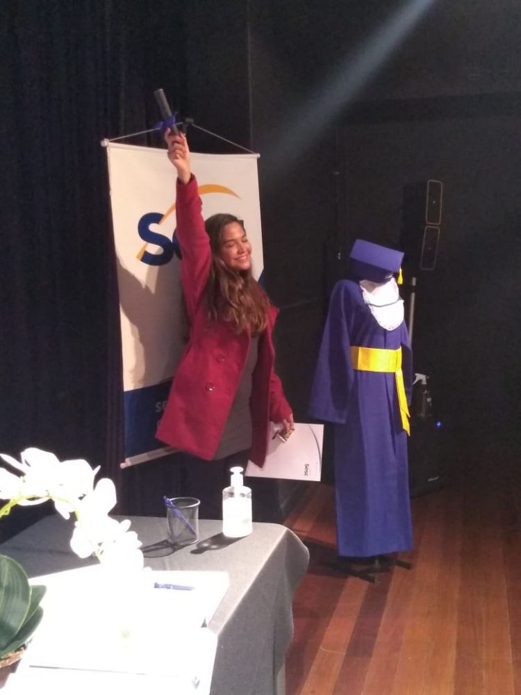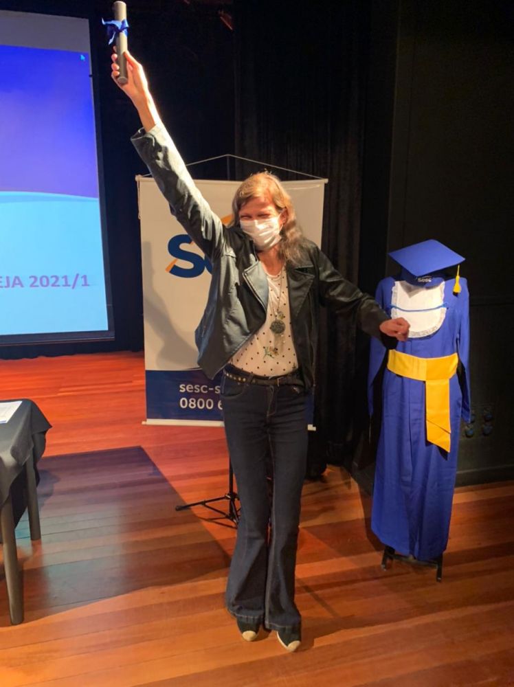 Nesta quinta-feira (08.07), o Sesc Prainha (Florianópolis) realizou uma cerimônia individual de formatura da Educação de Jovens e Adultos (EJA) – Ensino Médio, para celebrar a conclusão desta importante etapa da vida de 24 alunos. Estudantes que já têm em suas trajetórias, histórias de superação, tiveram que enfrentar também obstáculos relacionados à pandemia para conquistar o certificado.