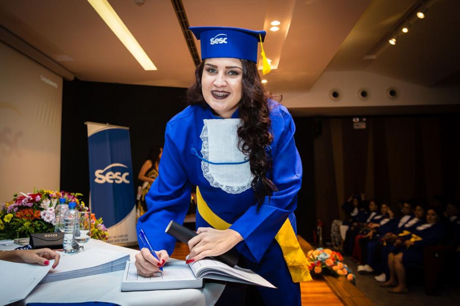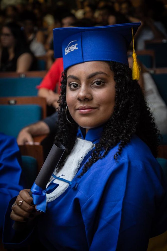 Muitos motivos fazem com que a trajetória escolar seja interrompida precocemente. Ajudar os pais, autoestima, filhos que chegam antes do tempo… Cada um dos 36 alunos que se formaram no Ensino Médio da Educação de Jovens e Adultos do Sesc Prainha, na última sexta-feira, 06/12, carrega em sua história as marcas dessa lacuna. Porém, agora chegou a vez de ultrapassar as barreiras e começar a escrever uma nova história.