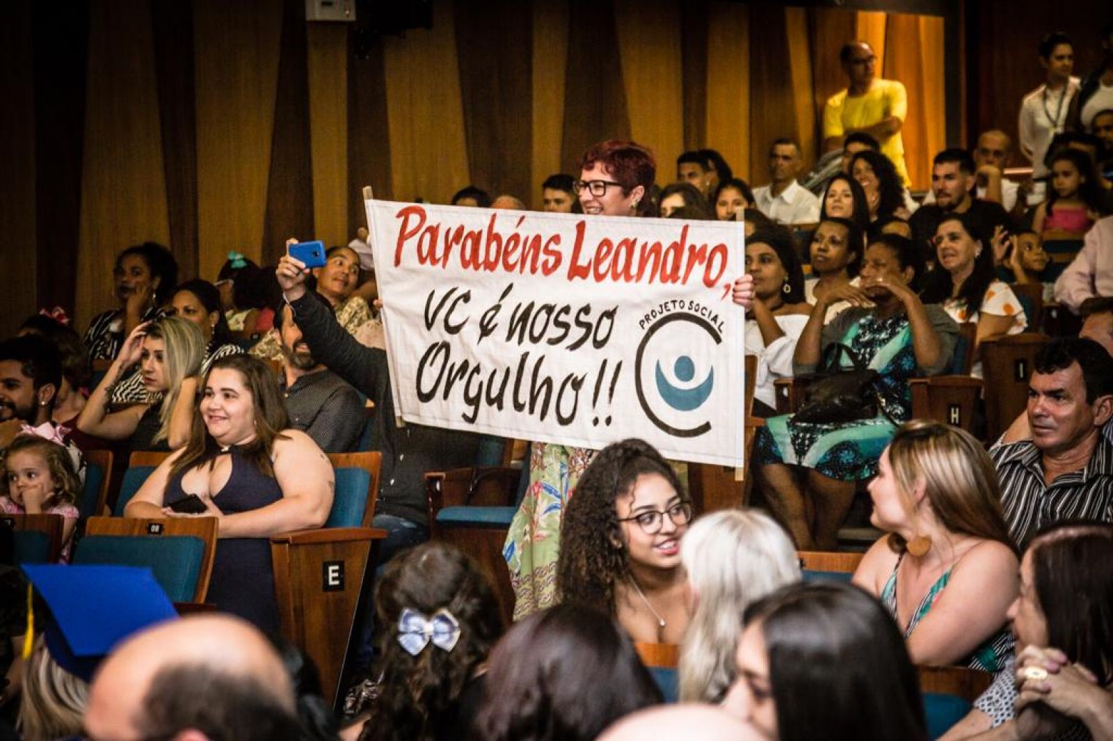 A formatura da EJA foi acompanhada por um auditório lotado de familiares e amigos que, emocionados, celebraram juntos esta conquista.