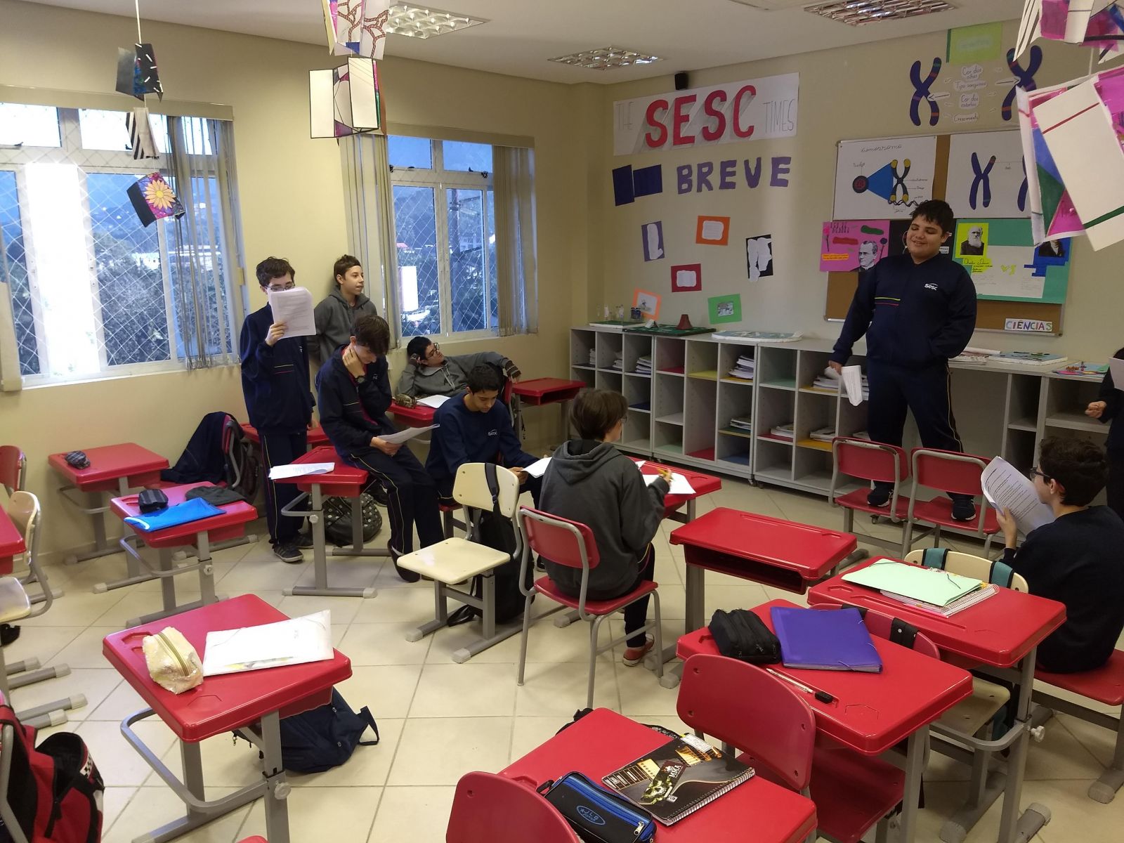 Os alunos do 9º ano da Escola Sesc Jaraguá do Sul deram um show de interpretação. Eles apresentaram duas peças teatrais para as demais turmas do Ensino Fundamental - anos finais. Durante as aulas de português, orientados pela professora Isabeli, os estudantes escreveram peças contemporâneas com um conteúdo muito crítico. Intituladas de "A Enfermeira" e "Corrupção", as peças abordaram temas importantes, como ética, relações de poder e a natureza humana.