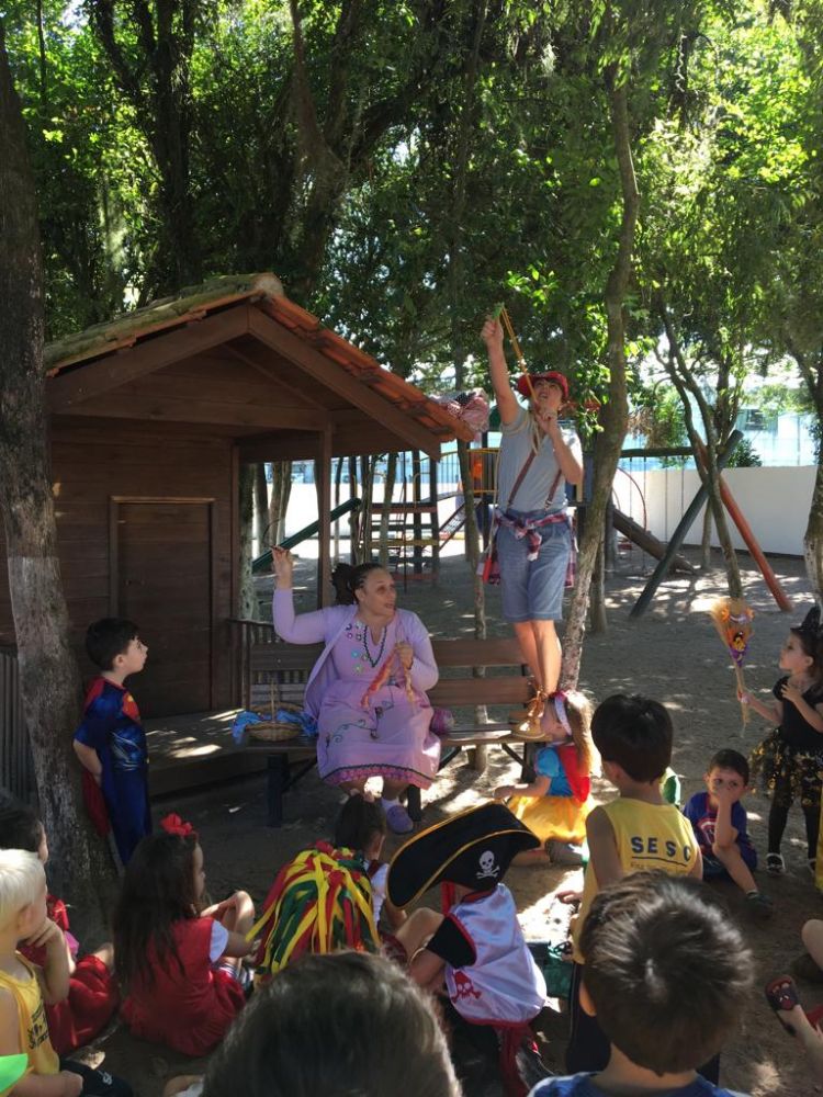 Ah! Não podemos deixar de dizer que houve até a caçada para colocar o Saci na garrafa, as crianças receberam as instruções do Visconde e saíram pela escola a sua procura. E não é que encontramos vários Sacis escondidos pelo bosque! Também experimentamos as receitas deliciosas de Tia Nastácia, ouvimos atentamente os conselhos do Visconde e vimos de perto a coragem de Pedrinho em capturar a Cuca. A diversão foi garantida e deixou a criançada ainda mais envolvida com o imaginário que as histórias possibilitam.