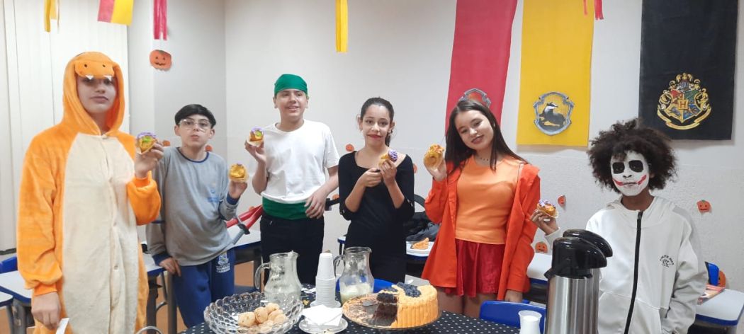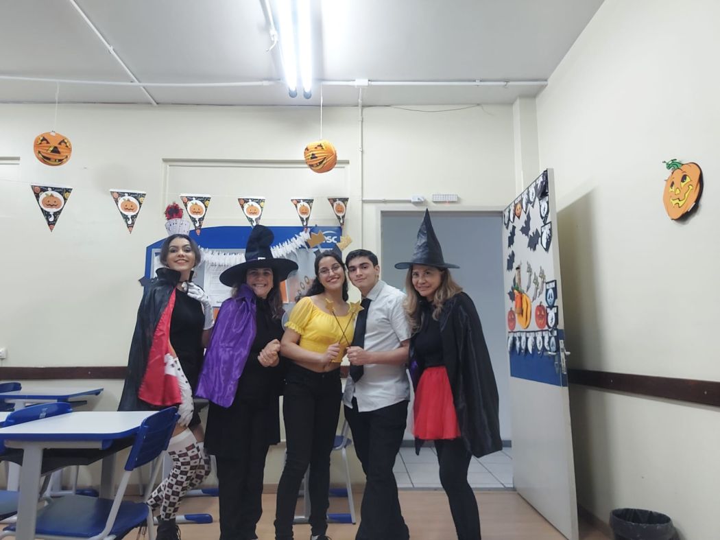 A data, tão tradicional da cultura inglesa, tem ganhado cada vez mais destaque no Brasil. No Sesc-SC, as atividades extrapolaram às salas de aula de inglês e invadiram outros espaços das Unidades, com ações alusivas e decoração especial. As turmas foram convidadas a virem fantasiadas e a participarem de atividades e programações especiais com a temática.