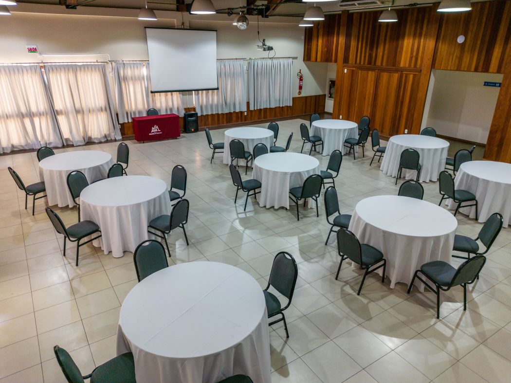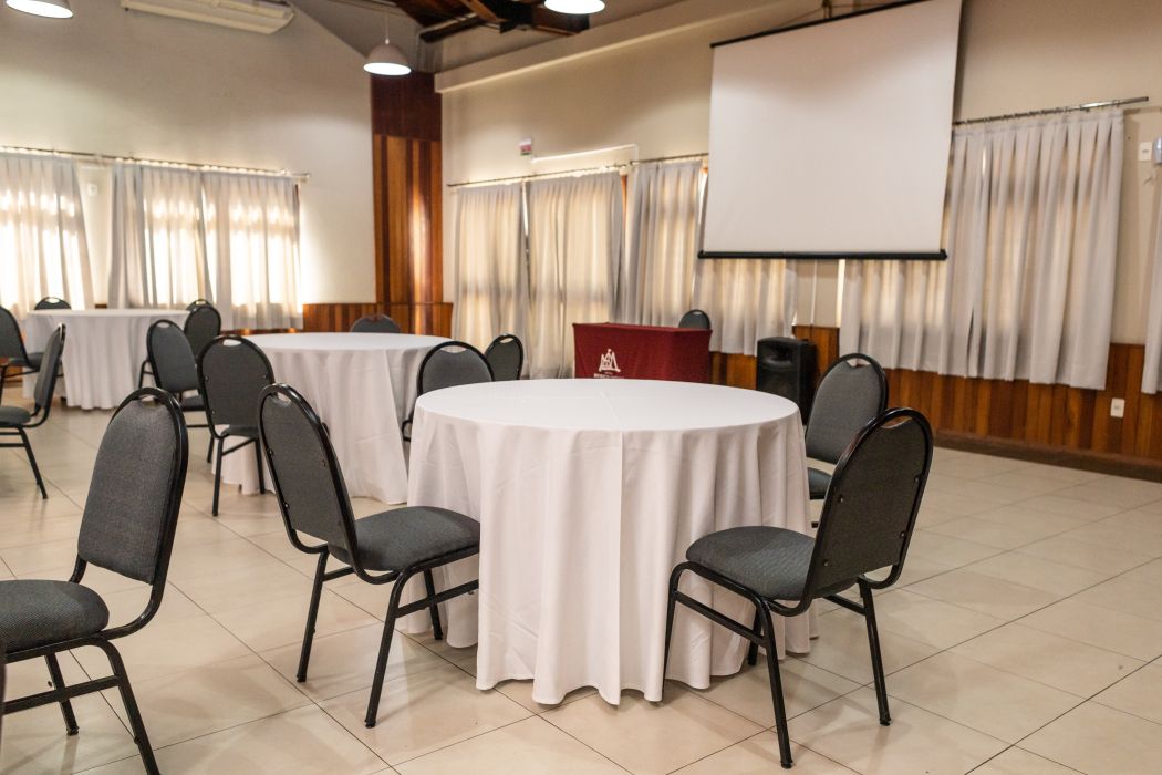 O Salão Social pode ser desenhado para grandes eventos. O espaço é ideal para convenções, congressos e grandes palestras, independente dos demais espaços do hotel, com atendimento e cardápio personalizados.