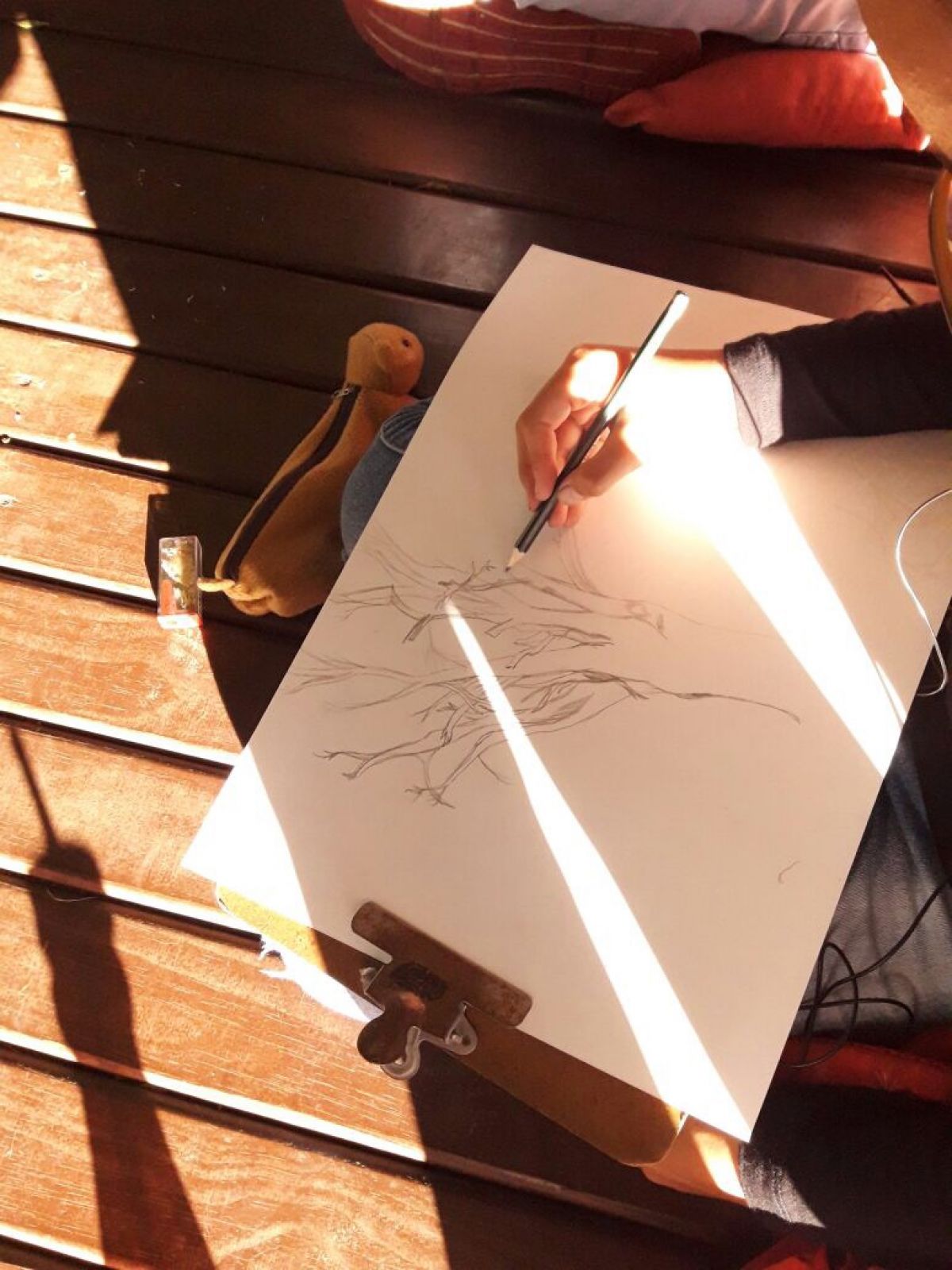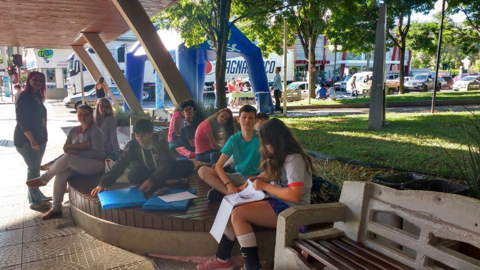 Os alunos do Curso de Artes Visuais, da turma juvenil, realizaram atividades de observação e desenho ao ar livre, com foco em reproduzir percepções macro da Praça Dogello Goss. A atividade foi escolher e fotografar um elemento e posteriormente desenhá-lo de maneira hiper realista. A orientação foi da instrutora Viviam Pozza de Mello.