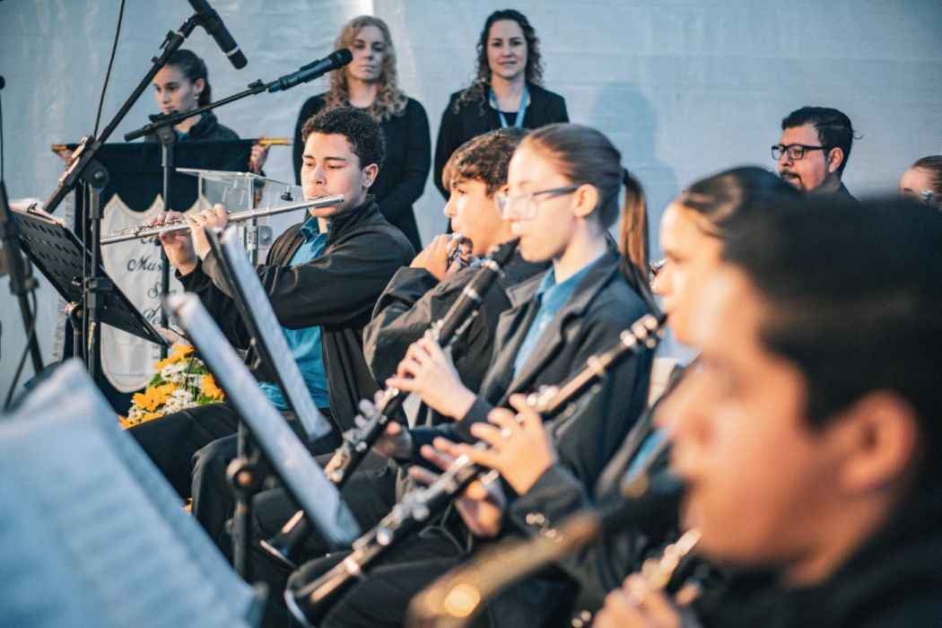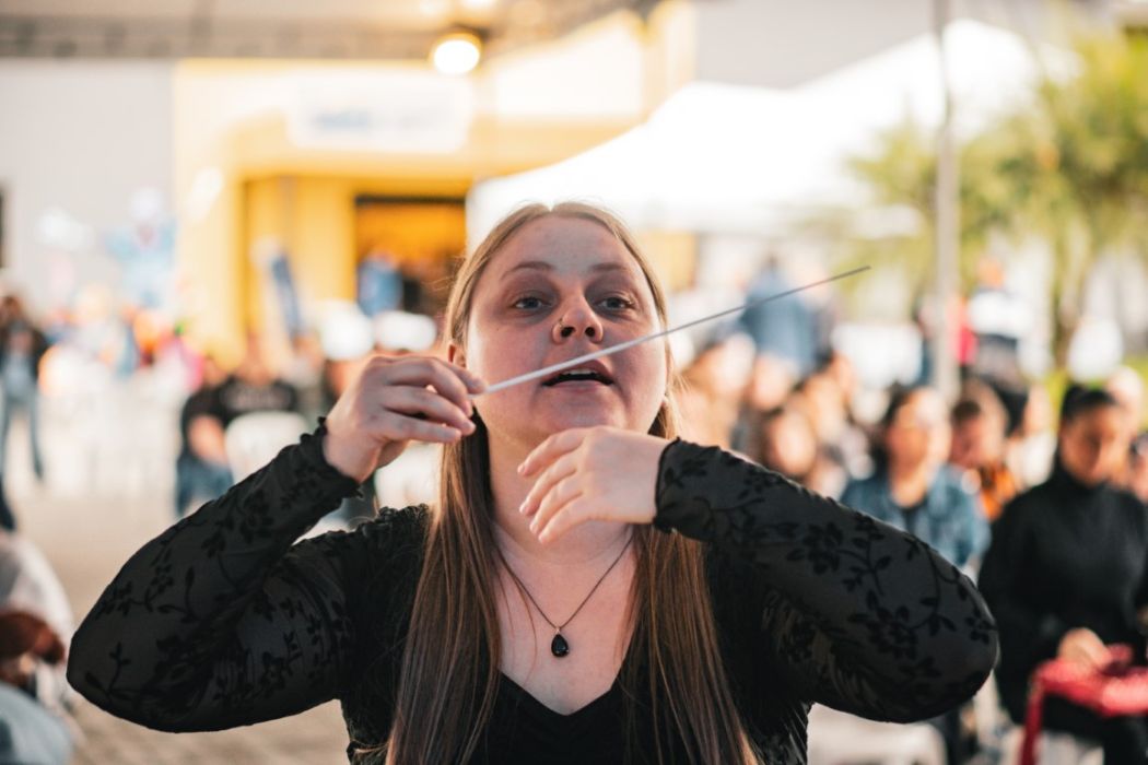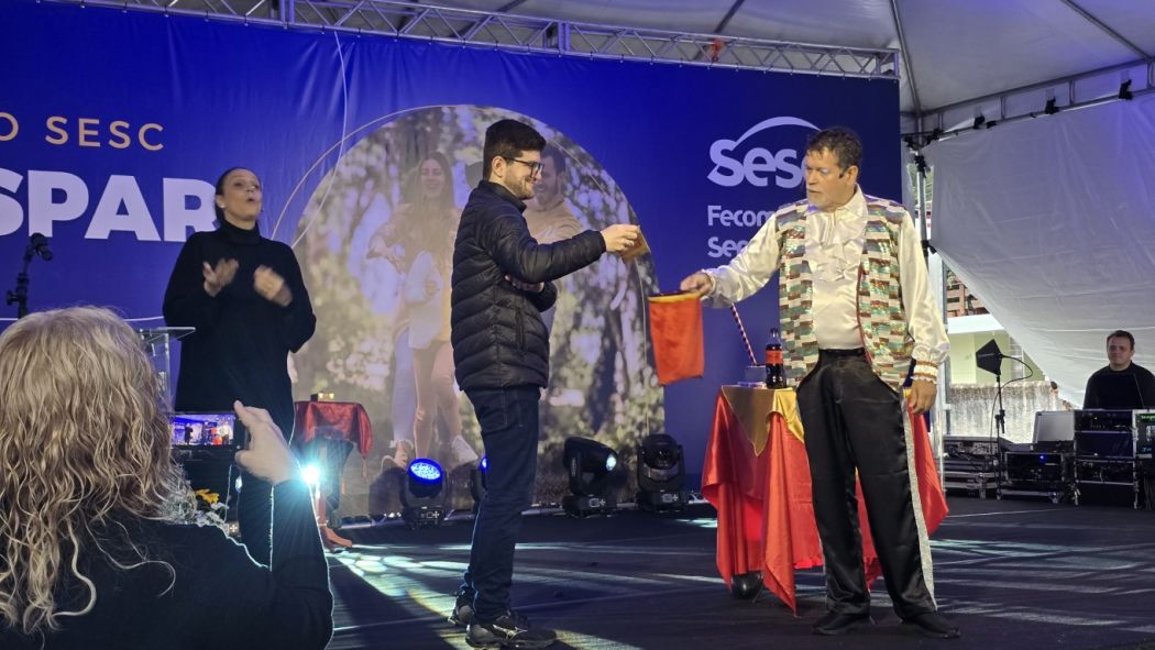 O público foi acolhido com alegria pela Cia Circense Lona Azul, que também levou sua magia ao palco com uma apresentação envolvente. A fanfarra da Banda Musical São Pedro, de Gaspar, emocionou os presentes com instrumentos de percussão e sopro. Na sequência, o Mágico Franco, vindo de Criciúma, encantou crianças e adultos com um espetáculo repleto de ilusionismo, arrancando sorrisos e aplausos.