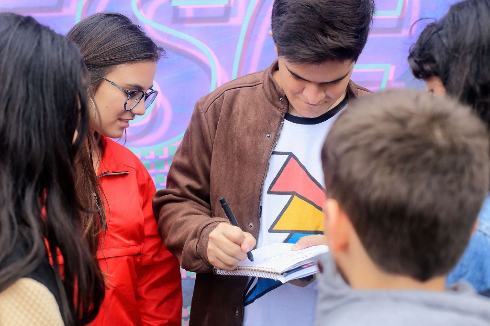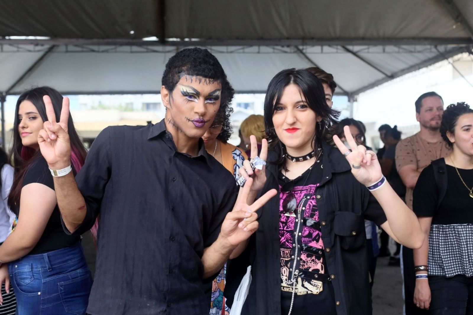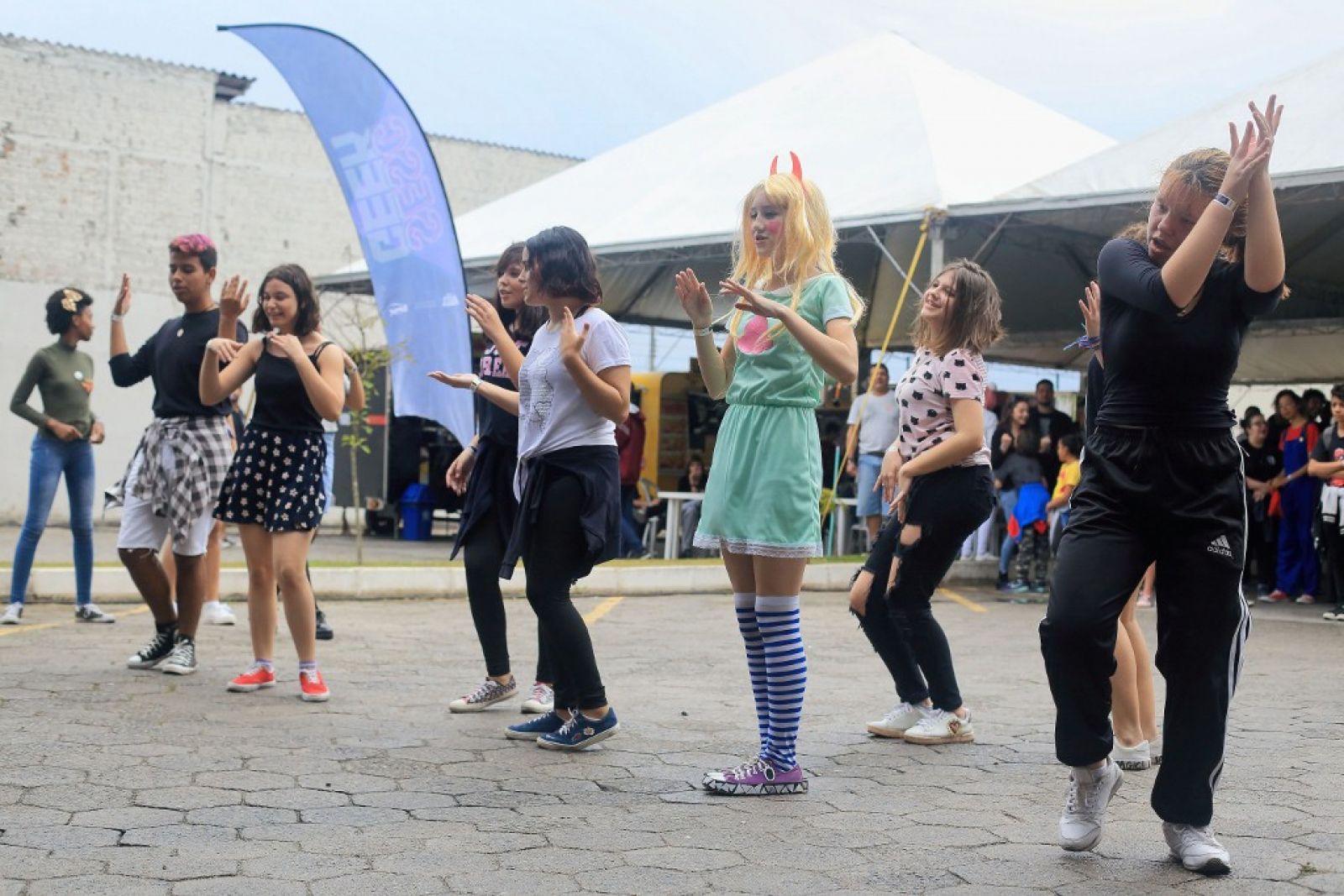 O k-pop foi o que trouxe a estudante Emely Soares e os colegas do 1º ano do Ensino Médio para o evento. A turma se considera “100% geek” e circulou com a plaquinha que virou febre, onde cada um podia estampar a mensagem que queria passar. A deles oferecia “abraços grátis”. “É um lugar onde nos sentimos confortáveis, pois encontramos pessoas que gostam das mesmas coisas que a gente”, conta a jovem.