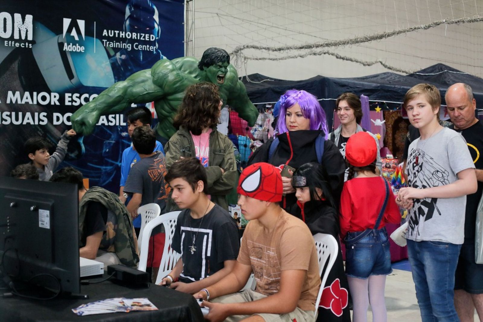 Para alguns pais também foi uma oportunidade de conhecer mais deste mundo e se inteirar sobre o universo dos seus filhos. Os meninos Victor e Mateus, de 13 e 8 anos, ficaram sabendo do evento pela televisão e convenceram seus pais Calani e Daian Xavier a levá-los. Eles sonham em ter um canal de youtube sobre games e contam com o apoio da família. Para o pai, foi tudo novidade: “Não entendo muito, mas estou me divertindo vendo a garotada animada e fantasiada”, conta. A mãe elogiou a organização do evento: “Viemos por que é no Sesc. Sou cliente desde sempre e conheço a Instituição e sua credibilidade. Por isso, tivemos a confiança em trazer as crianças e adoramos”.
