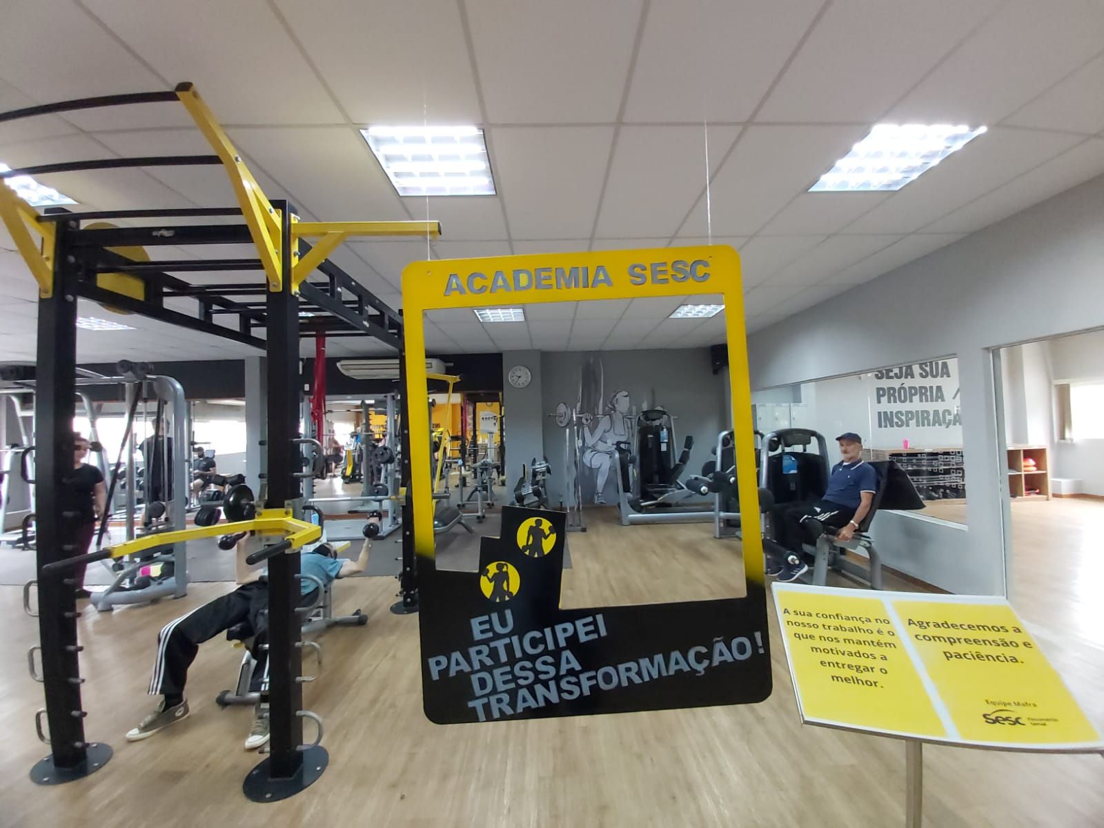 “Seja sua própria inspiração” é uma das frases estampadas na nova Academia Sesc Mafra para motivar a rotina de atividades físicas.