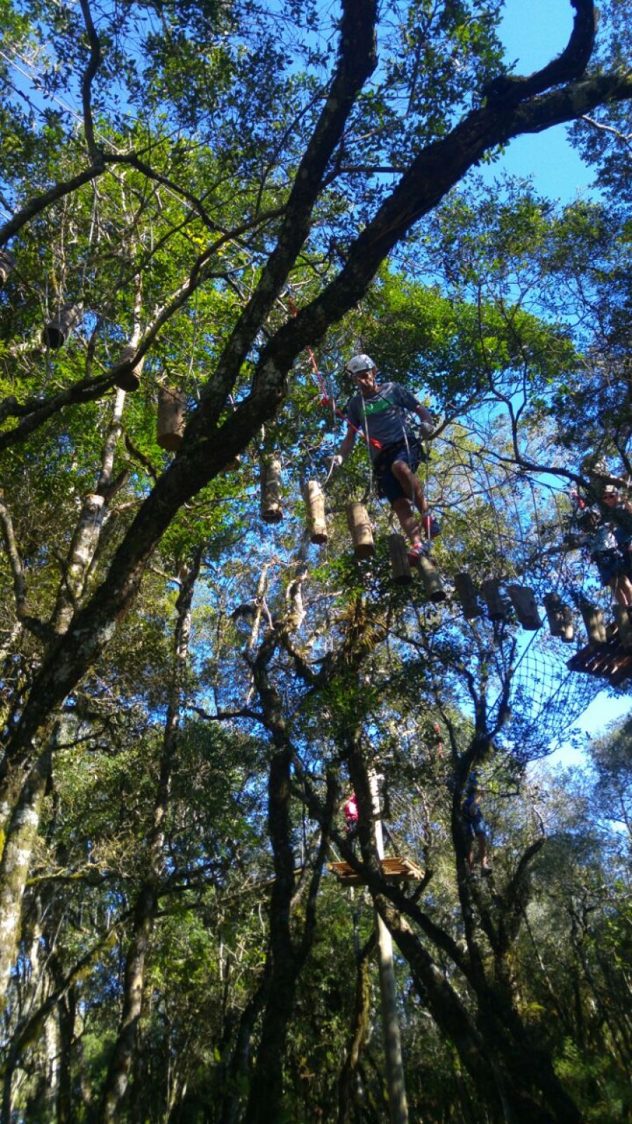 circuito de arvorismo, com 12 estações: paredão de escalada, falsa baiana,