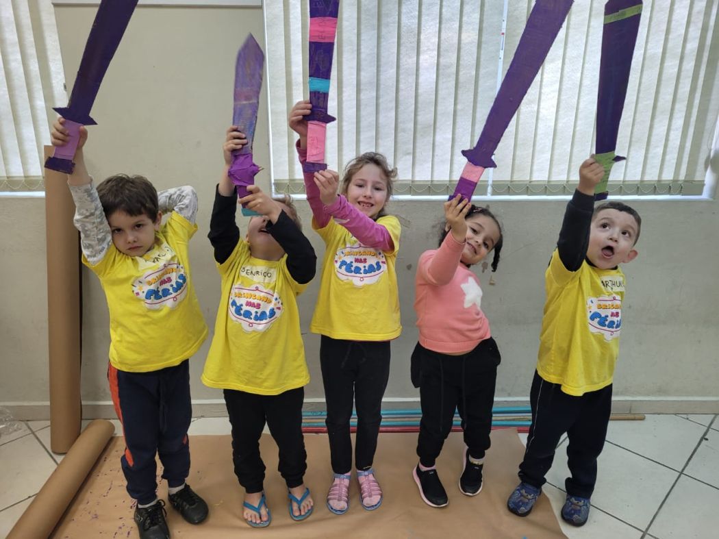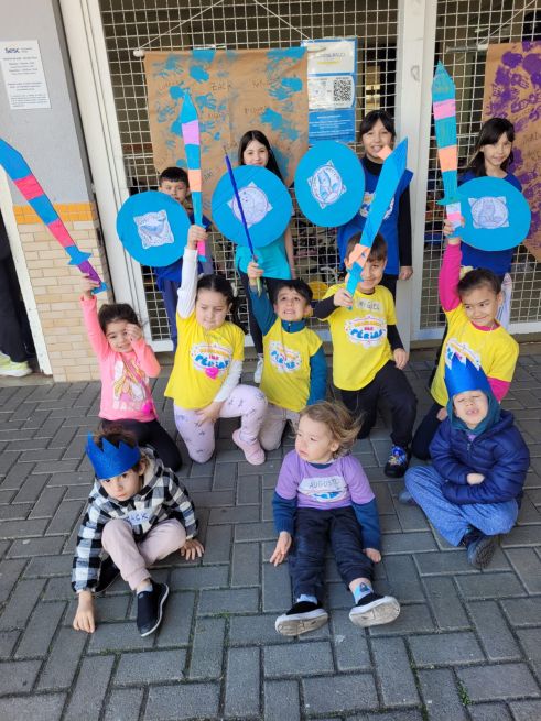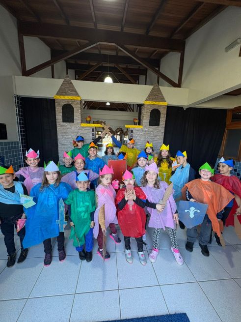 Ao longo da semana, as crianças participaram de desafios temáticos, oficinas de escudos e coroas, teatros de fantoches, aventuras por castelos encantados e muitas outras experiências que despertaram o encantamento e o prazer de descobrir novas histórias.