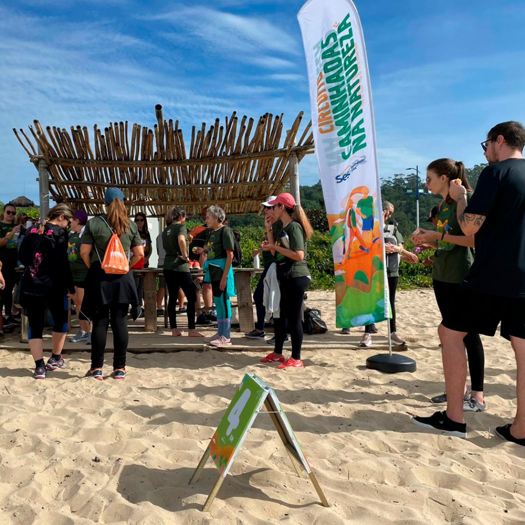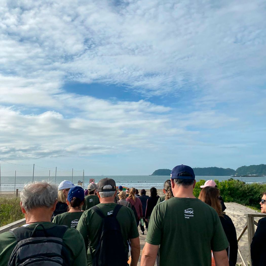 No último domingo, 21 de maio, aconteceu mais uma edição do Circuito Sesc de Caminhadas na Natureza, dessa vez na cidade de Itajaí. O evento iniciou às 8h da manhã, como ponto de partida o Sesc Itajaí. Foram planejados dois trajetos para atender todos os públicos, um para iniciantes (ida e volta da Praia do Atalaia até Praia de Cabeçudas) e nível avançado (ida e volta da Praia do Atalaia até Canto do Morcego -Praia Brava). Ao todo, participaram 125 pessoas da caminhada, um momento em grupo, de muito contato com a natureza e Mata Atlântica do Parque do Atalaia, uma das unidades de preservação do município.