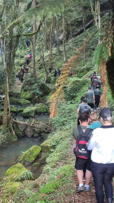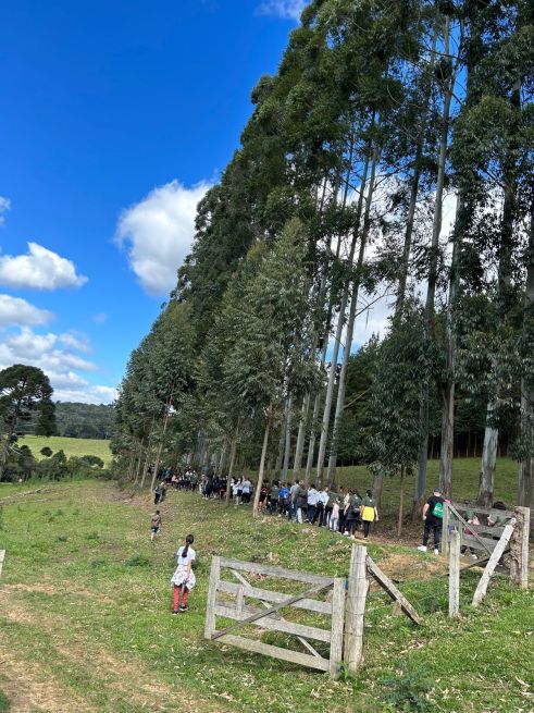 O Sítio Schandoá foi o cenário da etapa Mafra do Circuito Sesc de Caminhadas na Natureza, realizada no último domingo, dia 27 de agosto. Ao longo dos 5 Km de percurso, 170 participantes exploraram trilhas, estradas rurais, pontes e riachos até chegarem a um dos pontos mais esperados: a cachoeira Vô Colli.