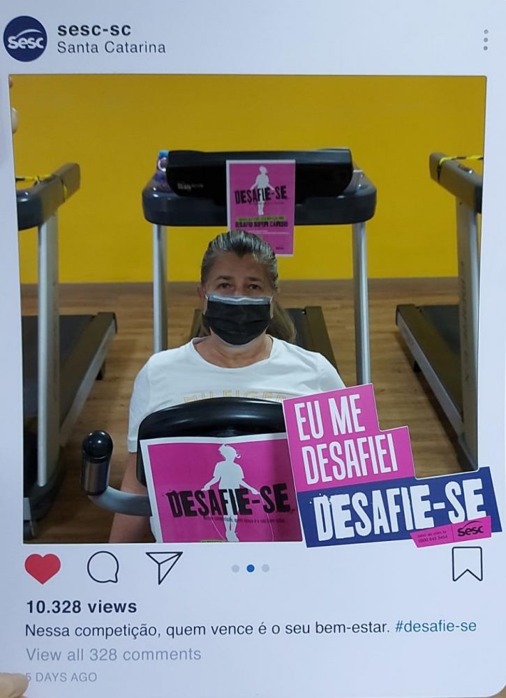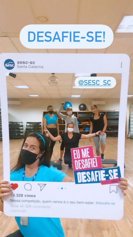 - Live Dia do desafio: atividade física, bom pra mim, bom pra todos!, com participação da Técnica de Desenvolvimento Físico-Esportivo do Sesc Tubarão, Thays dos Santos Daglio, e mediação do Analista de Programação Social - Lazer, do Departamento Regional do Sesc-SC, Rogério Bulhões Corvino