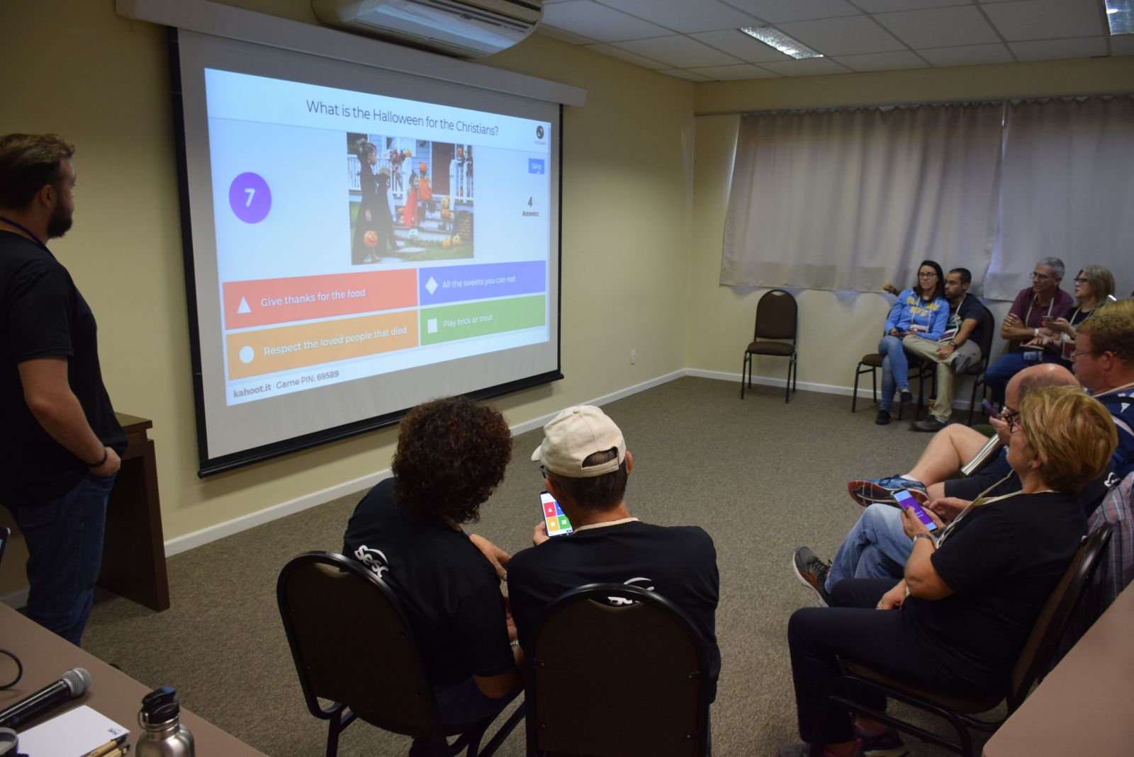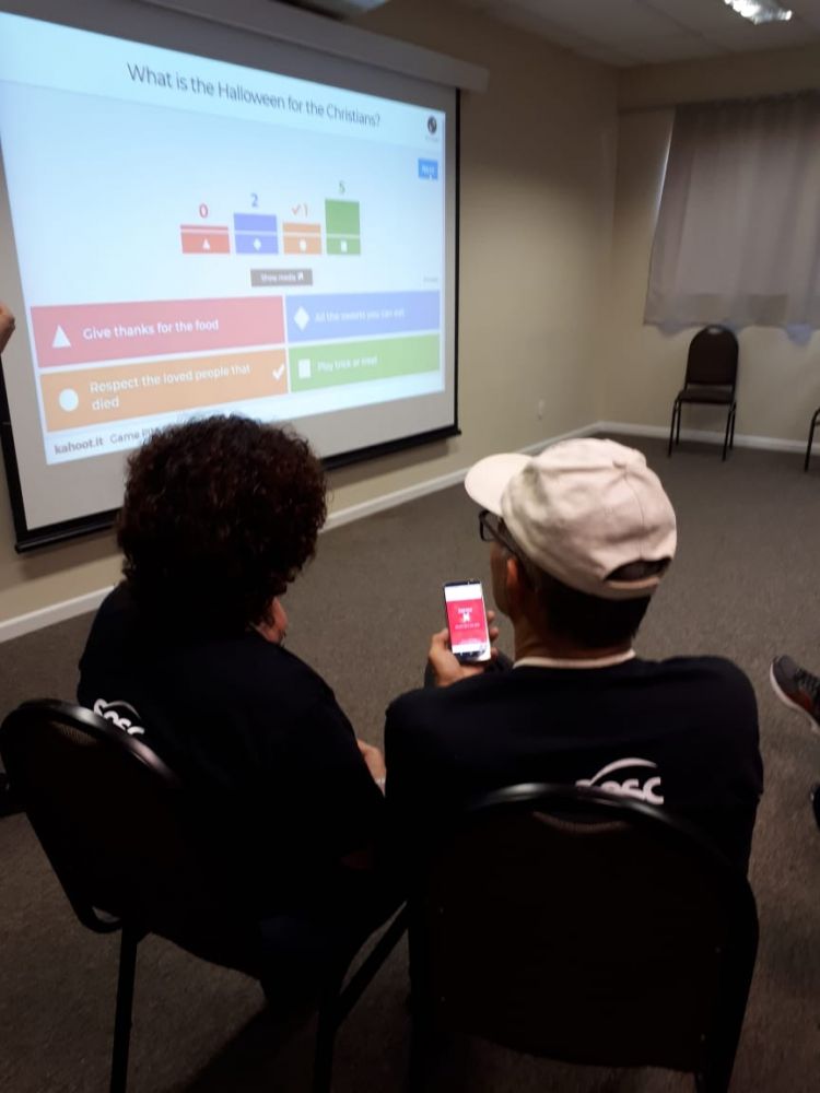 Vindos de diversas cidades catarinenses e também dos estados de São Paulo e Minas Gerais, os presentes vivenciaram toda a programação usando a língua estrangeira e puderam aprimorar a conversação e fluência. Foram realizados oito workshops: “Cooking Experience” – mão na massa e cabeça no inglês, para preparar e degustar uma deliciosa receita inglesa/americana; “Kahoot”, um super game para testar conhecimentos, de forma rápida, interativa e envolvente; “Screenwriter”, em que os participantes foram protagonistas dos seus próprios roteiros; “Stop”, divertido teste de conhecimentos gerais e vocabulário no menor tempo possível; “Jogos Online”, com música, interatividade e conhecimento; “Eco Experience”, oficina de educação ambiental para colocar em prática a sustentabilidade do planeta; “Escape Room”, uma aventura dentro de um ônibus, com enigmas, segredos e tempo escasso; e “Garage Sale”, para praticar o desapego e negociar objetos pessoais que estavam no fundo do armário. As confraternizações temáticas garantiram a descontração do grupo. Caracterizados, todos curtiram a “Halloween Party”, a “Band Party”, e o “Woodstock Festival”.