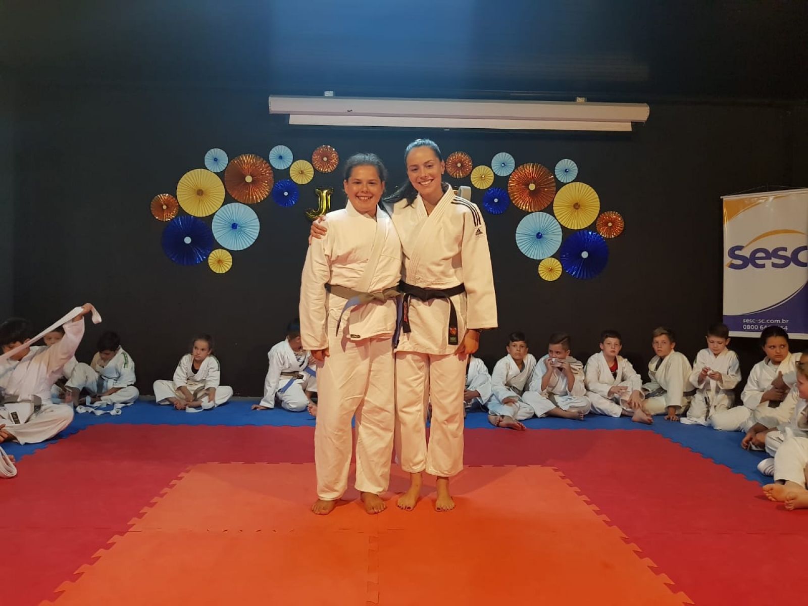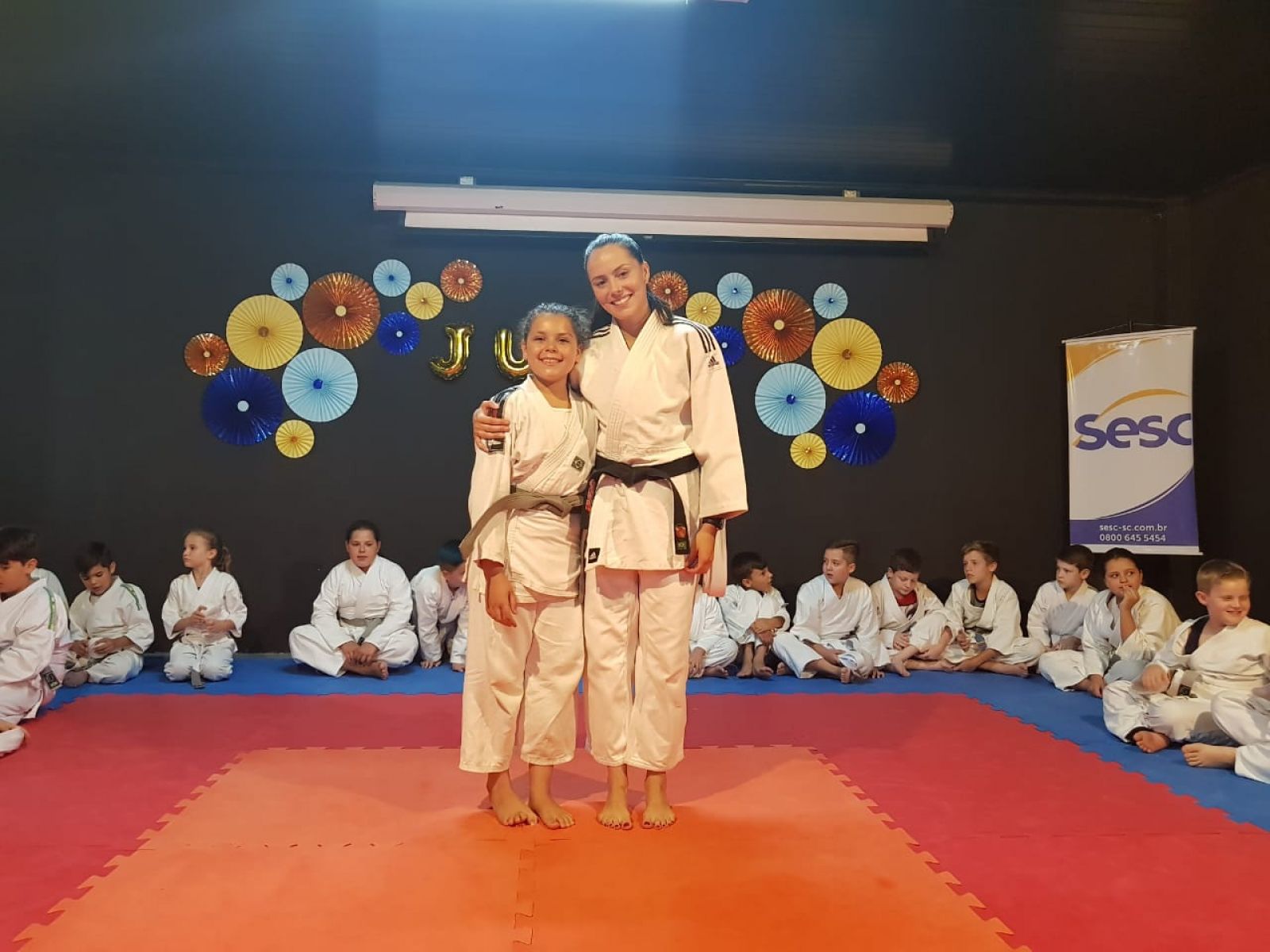 Judô não é um esporte só para meninos! No Sesc em Joaçaba, a procura pela prática da modalidade pelas meninas vem crescendo e hoje elas representam um terço do total de alunos. De acordo com a sensei (instrutora de Judô) Danieli Schaly, na faixa etária trabalhada (7 a 13 anos), as meninas e os meninos apresentam um desempenho motor bastante semelhante na realização dos movimentos. “Ou seja, a menina é tão forte e ágil como o menino, por isso a aula se torna mais divertida e atrativa, em que todos lutam, brincam e interagem sem que haja diferença de gênero. O essencial é sempre o estímulo do respeito e da interação de todos: menino, menina, mais jovem, menos graduado, mais leve, mais pesado, mais baixinho. Por isso que o judô é um esporte para todos”.