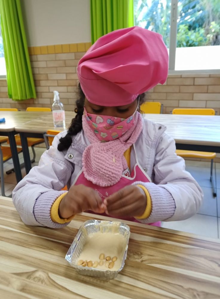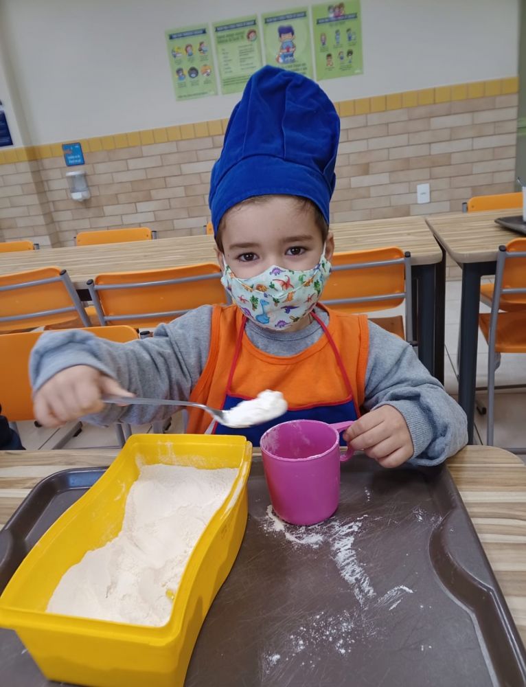 Na segunda semana, a oficina foi a de cuca, em que todas as crianças puderam participar da preparação da massa junto com a nutricionista Geisa, colocando e medindo os ingredientes e mexendo a massa. Logo após, cada criança colocou um pouco de massa em forminhas individuais e o recheio de sua escolha. As "cuquinhas" foram assadas e ao final do turno foram entregues e levadas para casa onde puderam degustar com a família.
