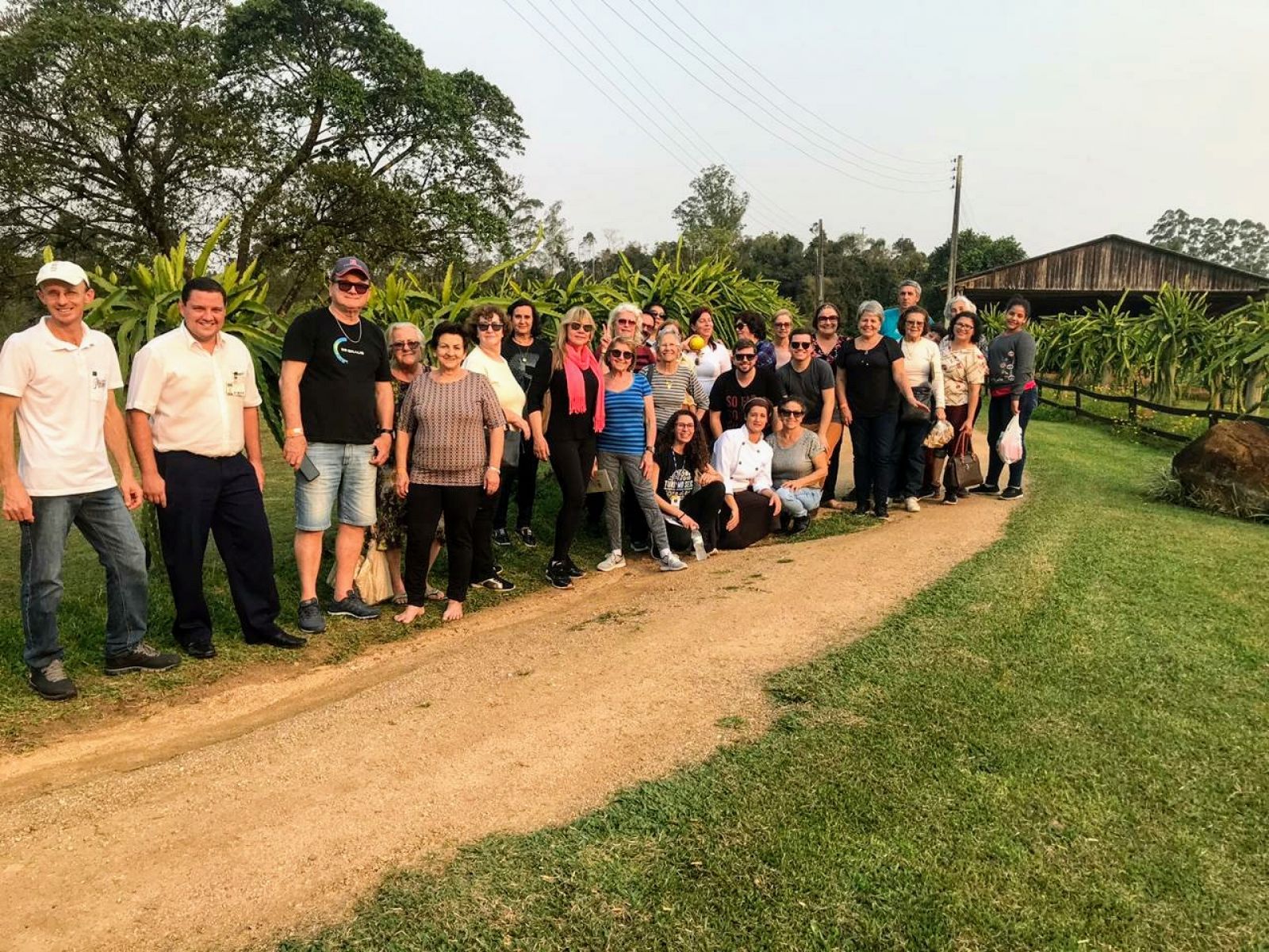 A passagem pela cidade rendeu boas lembranças de tempos e costumes que outrora fizeram parte do cotidiano dos participantes, bem como o interesse para os mais novos que não compartilharam dessas vivências. Seguindo o roteiro, partimos para a cidade de Grão Pará, literalmente nos pés da Serra Catarinense (Urubici). No município paramos na Fazenda Caminho das Pitayas que faz parte do roteiro de agroturismo da região. O Caminho das Pitayas possui um grande campo de plantação da fruta, com diversidade de espécies. O casal de proprietários se empenha diariamente no cultivo da pitaya que inicia sua floração em novembro, com produção, aproximadamente, até maio. Na fazenda foi possível conhecer os tipos de pitayas, as produções e mais curiosidades sobre a fruta.