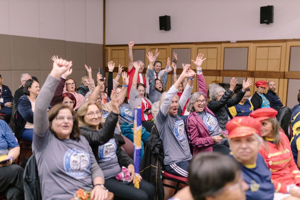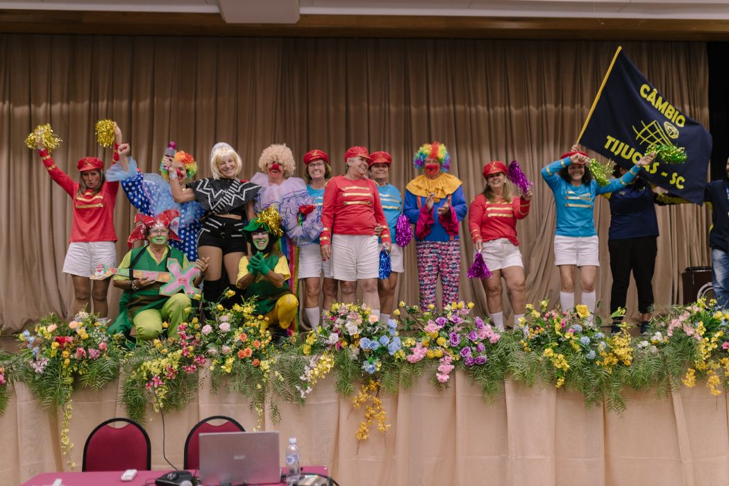 Logo nas primeiras atividades, as equipes demonstraram todo o seu engajamento com apresentações de bandeiras personalizadas e covers musicais. Destaque para as performances animadas que marcaram a noite de abertura: Itajaí trouxe o clássico “Y.M.C.A.” do Village People; Tijucas relembrou a era da Xuxa; Criciúma reviveu Wanderléa com a música “Pare o Casamento”; Lages homenageou a banda Grafite com “Mamma Maria”; Joinville levantou a torcida ao som de “Fuscão Preto”, do Trio Parada Dura; Chapecó trouxe o tradicionalismo gaúcho com Elton Saldanha e a música “Não Chora China Véia”; e Florianópolis encerrou com o cover das Empreguetes.