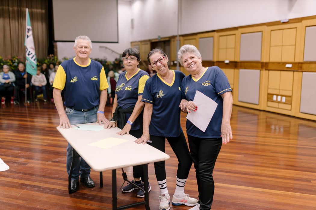 Entre os dias 7 e 10 de abril, a Pousada Rural Sesc Lages foi palco de mais uma edição do Jogos de Integração Máster (JIM), reunindo mais de 100 participantes divididos em sete equipes representando unidades do Sesc de Chapecó, Criciúma, Itajaí, Joinville, Lages, Prainha e Tijucas. Com provas esportivas, recreativas e culturais, o evento promoveu a integração entre os participantes por meio de desafios que exigiram criatividade, trabalho em equipe e espírito esportivo.