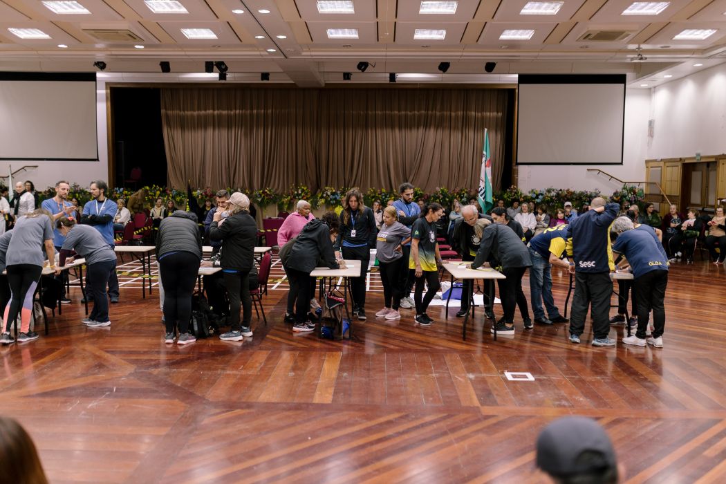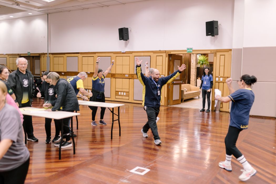 A equipe Verdes Mares, de Itajaí, foi a primeira a concluir esse desafio. À noite, a programação seguiu com seis provas da “J.I.M.cana”, combinando tarefas cognitivas e motoras.