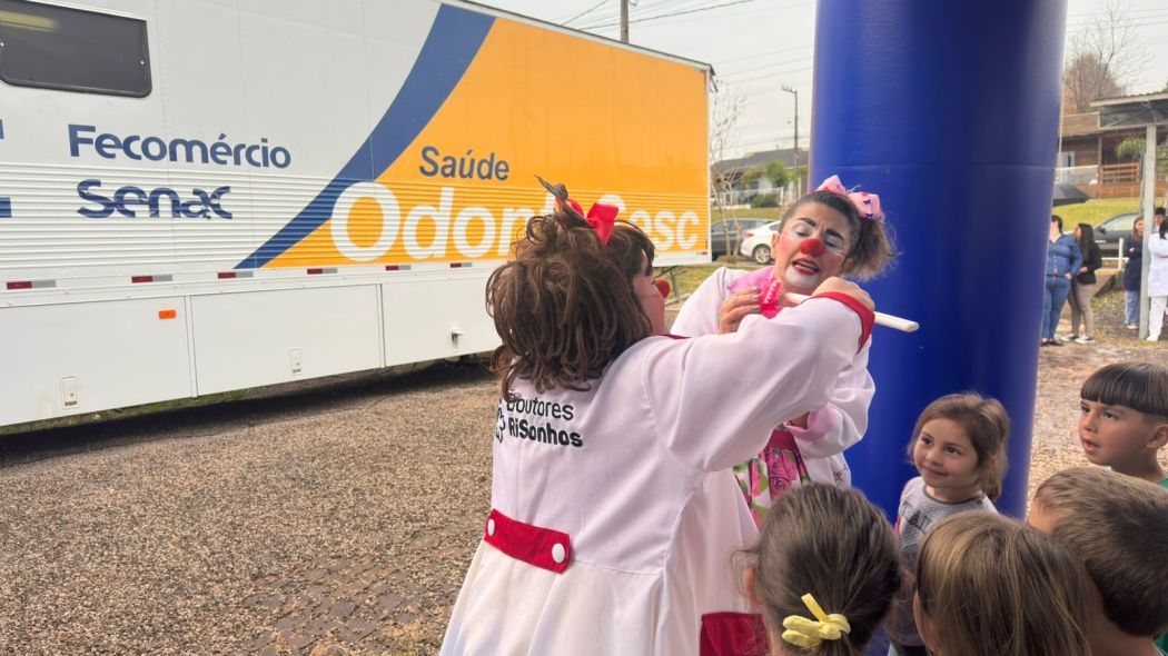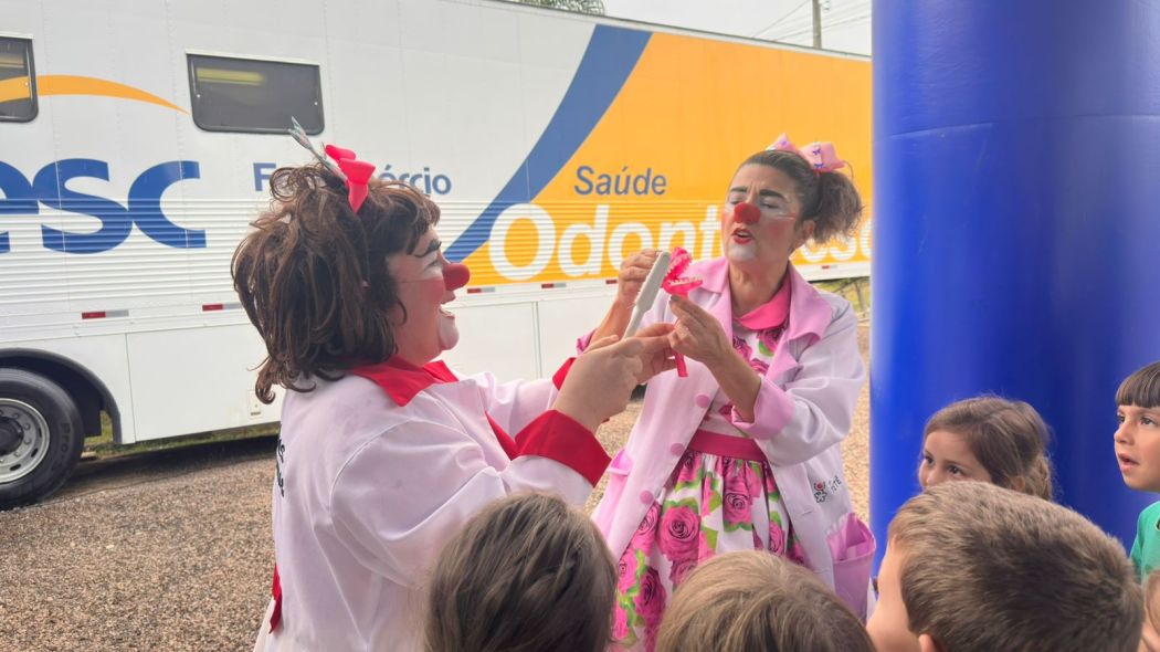 A programação incluiu também uma atividade lúdica de Educação em Saúde. As personagens Doutoras RiSonhos Barrica e Tetê conduziram a ação que transformou o aprendizado sobre higiene bucal em um momento divertido e de conscientização para duas turmas da pré-escola da Escola Municipal Gilberto Tavares, com crianças de 4 a 6 anos.