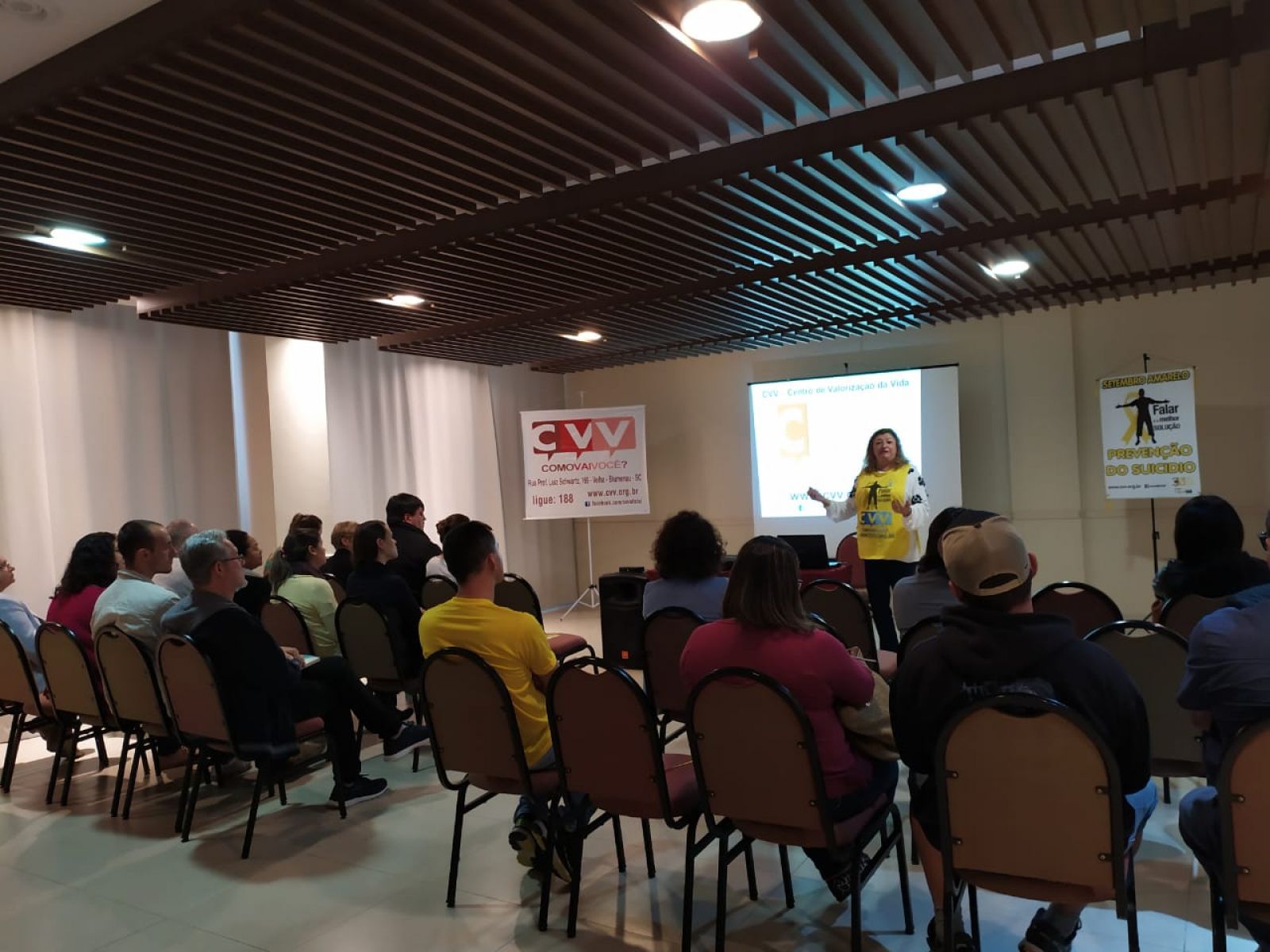 No Sesc Palhoça, no dia 30/09, às 14h, acontece a palestra "Falando sobre prevenção do suicídio", com Carmen Lacerda, voluntária do CVV. As inscrições são gratuitas e podem ser feitas pelo e-mail mesabrasilsesc@sesc-sc.com.br ou pelo whatsapp (48) 99931.1383. Para informações sobre as ações desenvolvidas, consulte a Unidade do Sesc mais próxima.